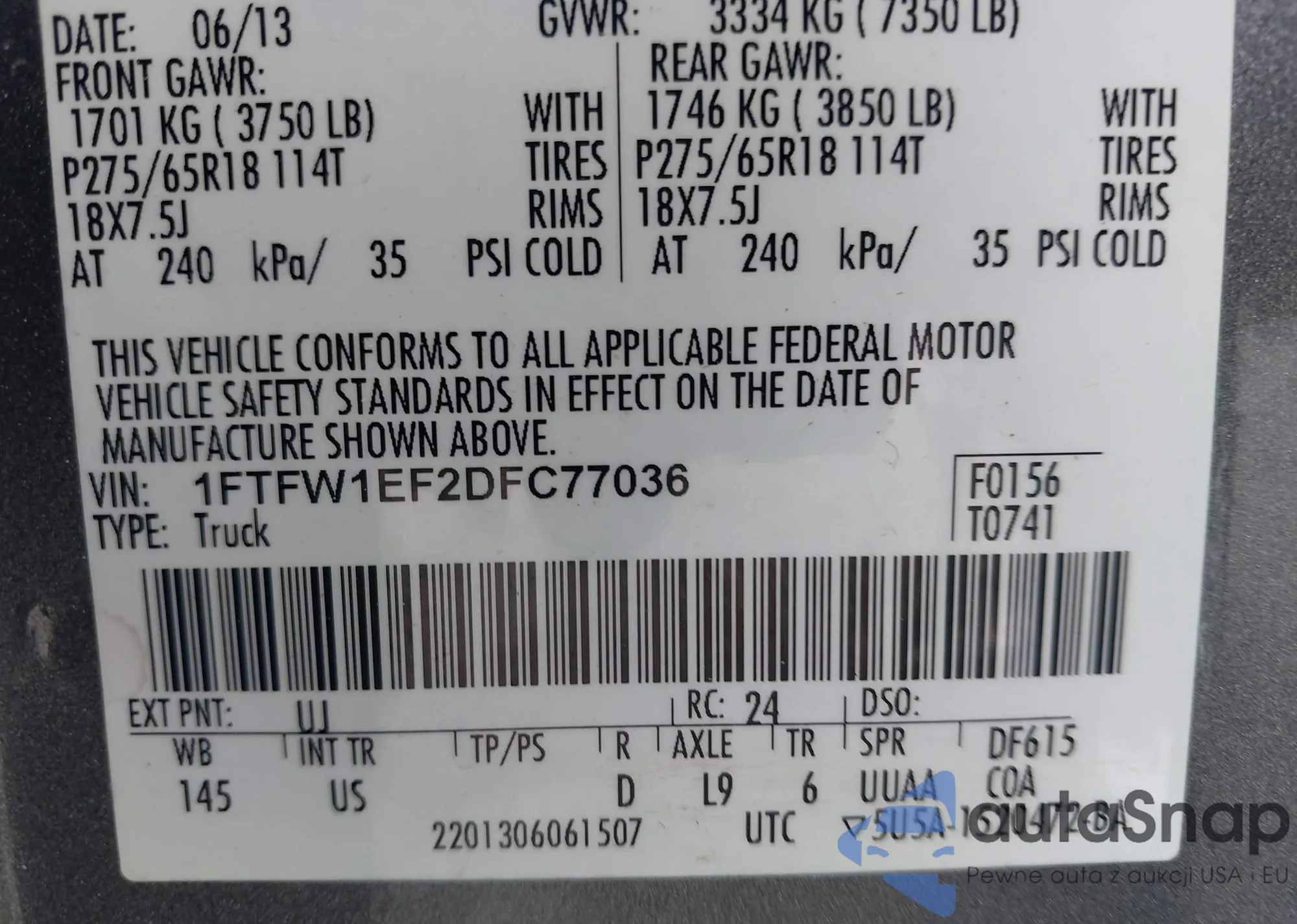 • VIN 4T1BF1FK7DU235060
