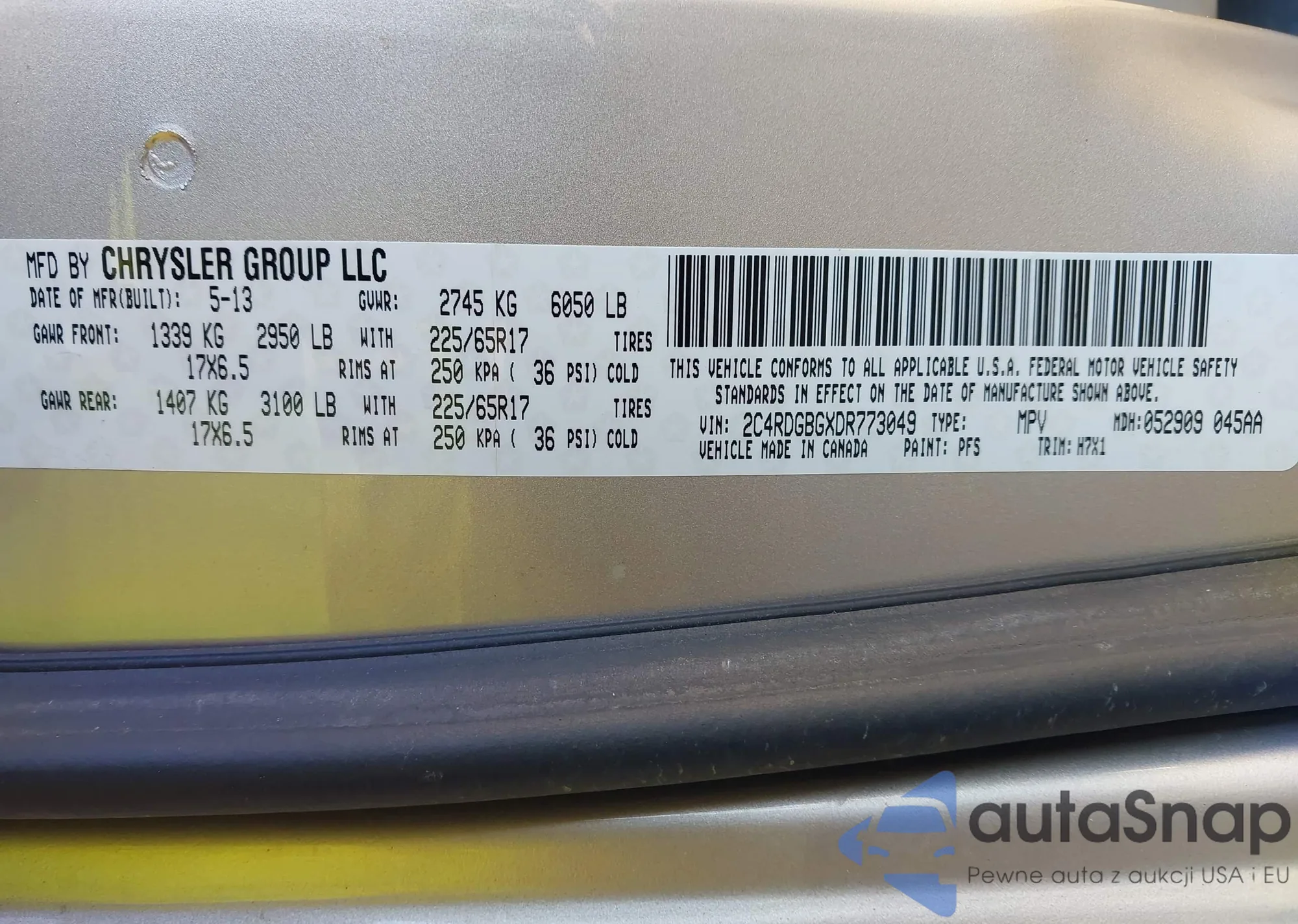 • VIN 1C4RDJDG5JC462126