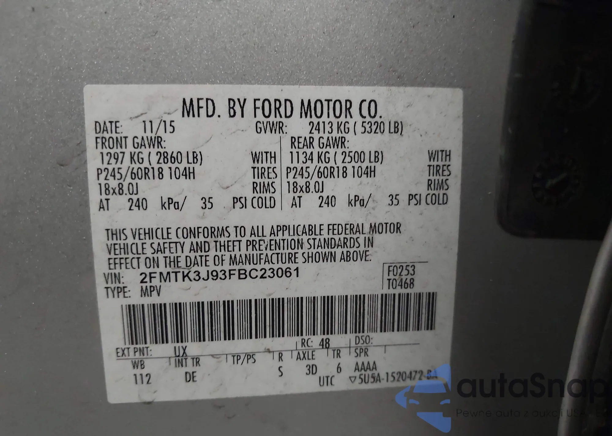 • VIN 2FMTK3J93FBC23061