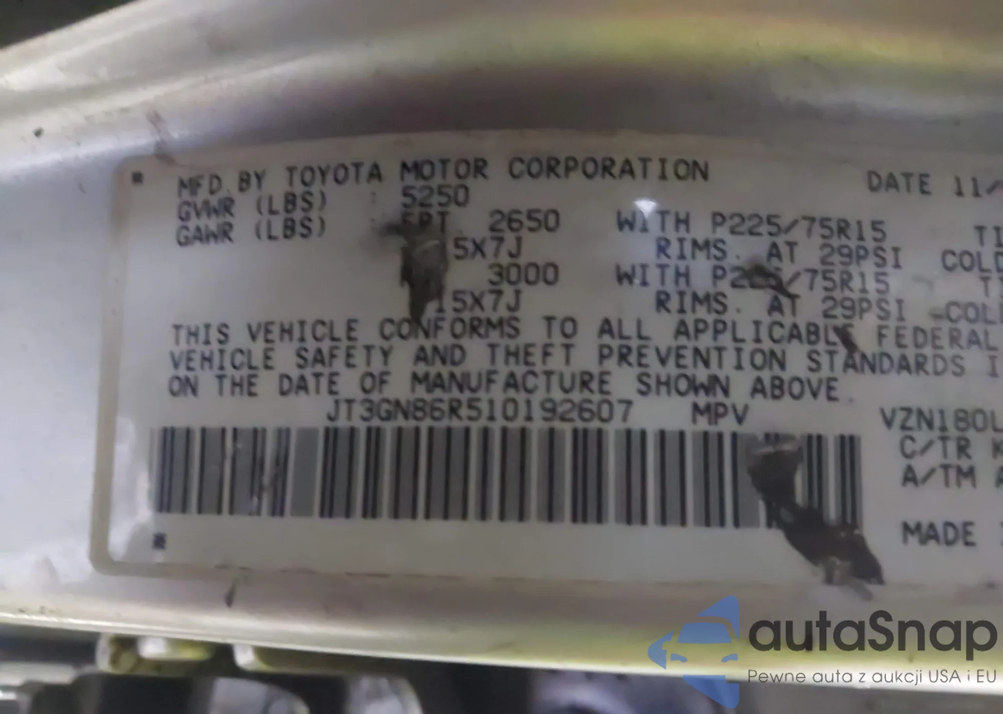LOT: 43962567 VIN: JT3GN86R510192607