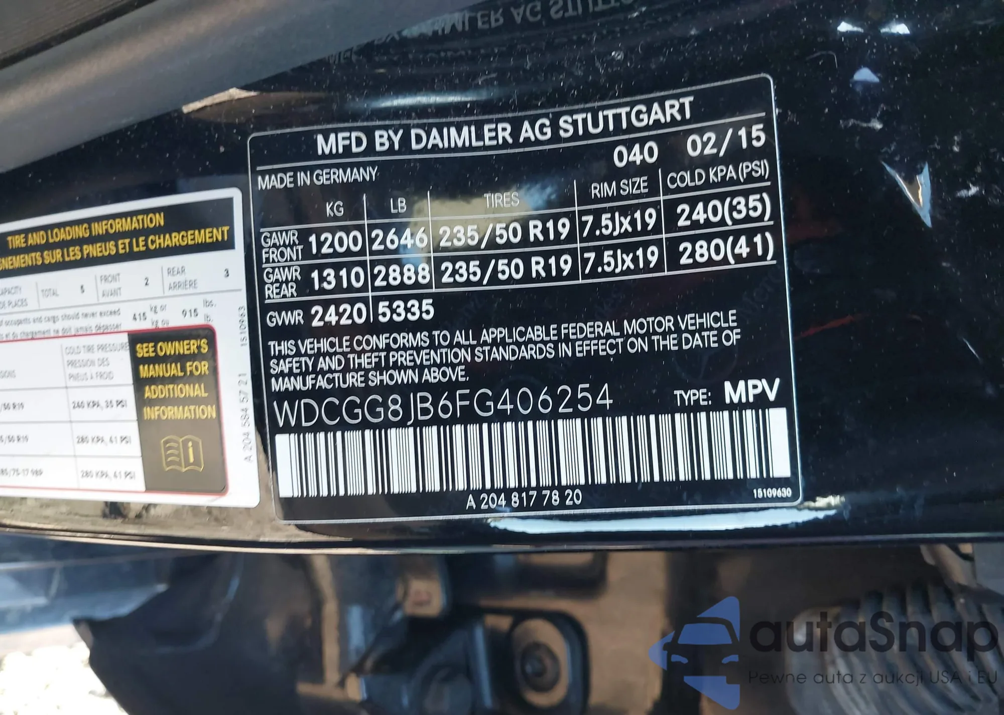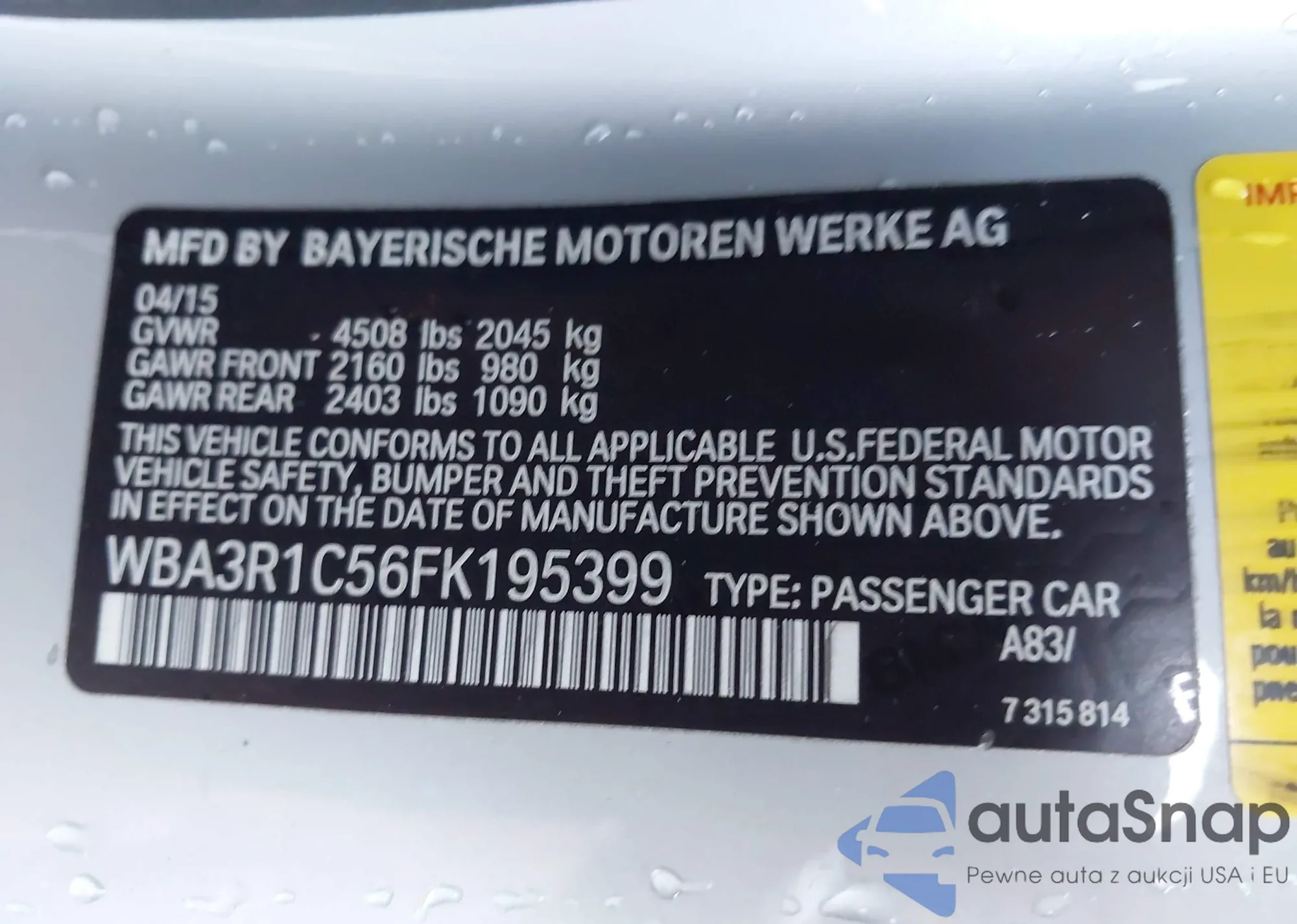 LOT: 44048569 VIN: WBA3R1C56FK195399