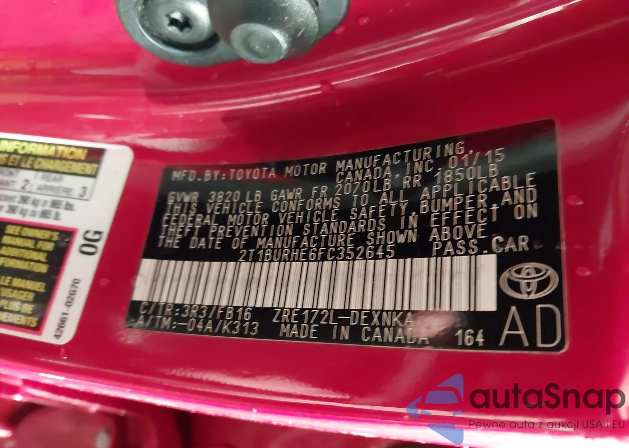 LOT: 43862227 VIN: 2T1BURHE6FC352645
