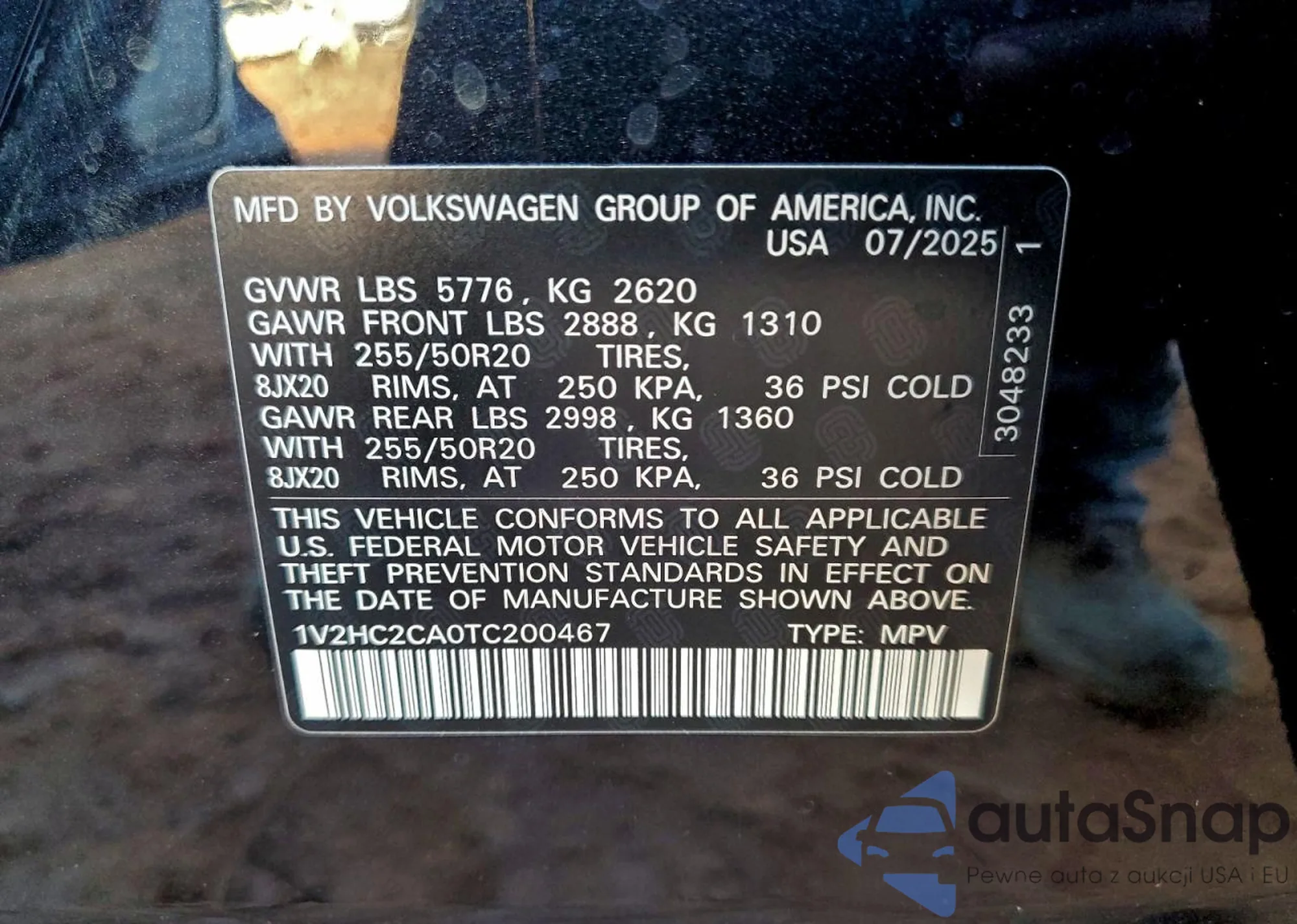 LOT: 94457705 VIN: 1V2HC2CA0TC200467