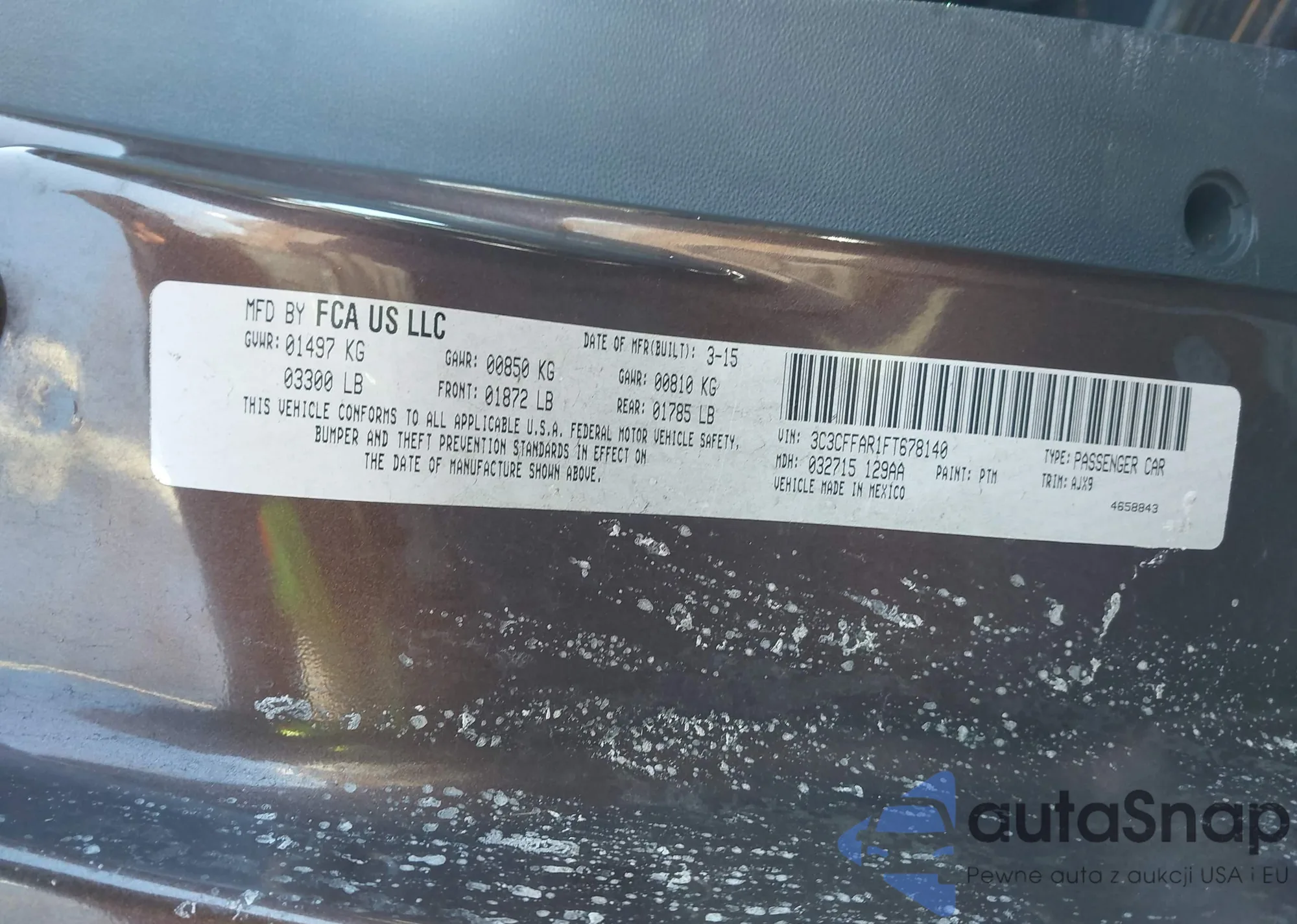 LOT: 43917337 VIN: 3C3CFFAR1FT678140