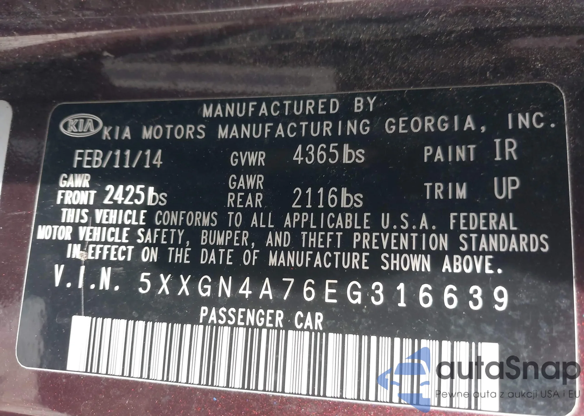 • VIN 5XXGN4A76EG316639