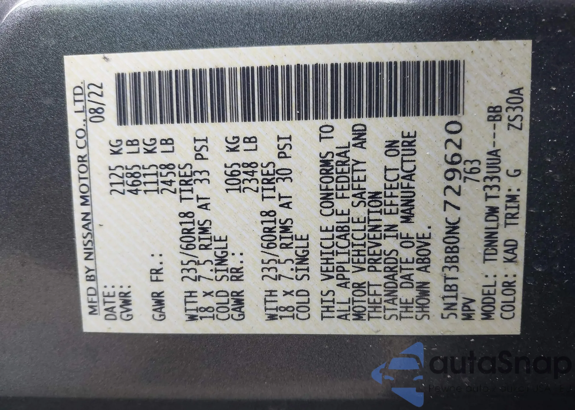 • VIN SAJBL4GX9NCY90807