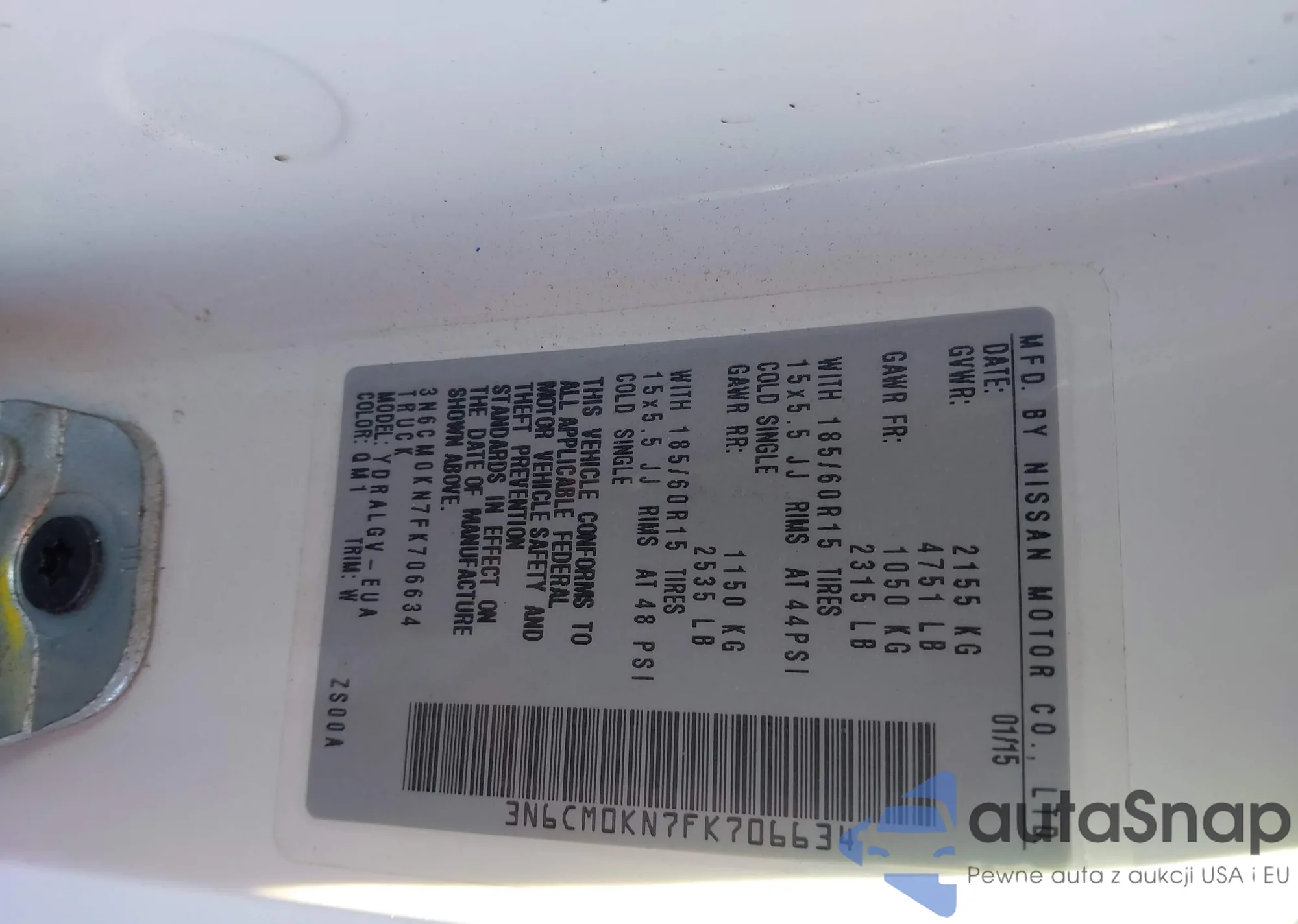 LOT: 43960579 VIN: 3N6CM0KN7FK706634