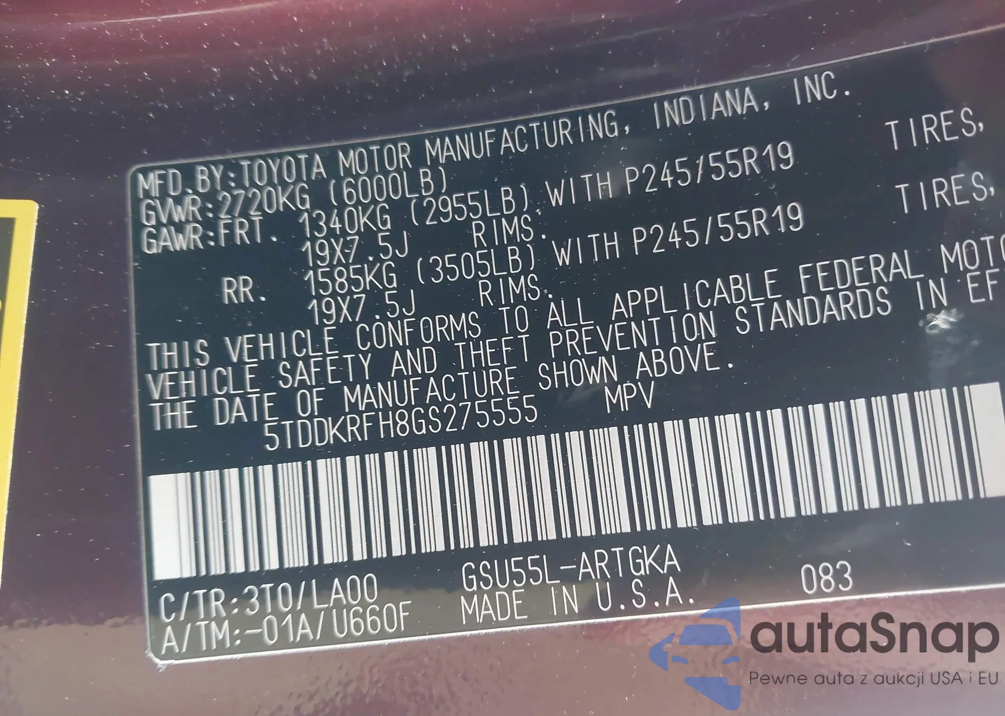 • VIN 5TDDKRFH8GS275555