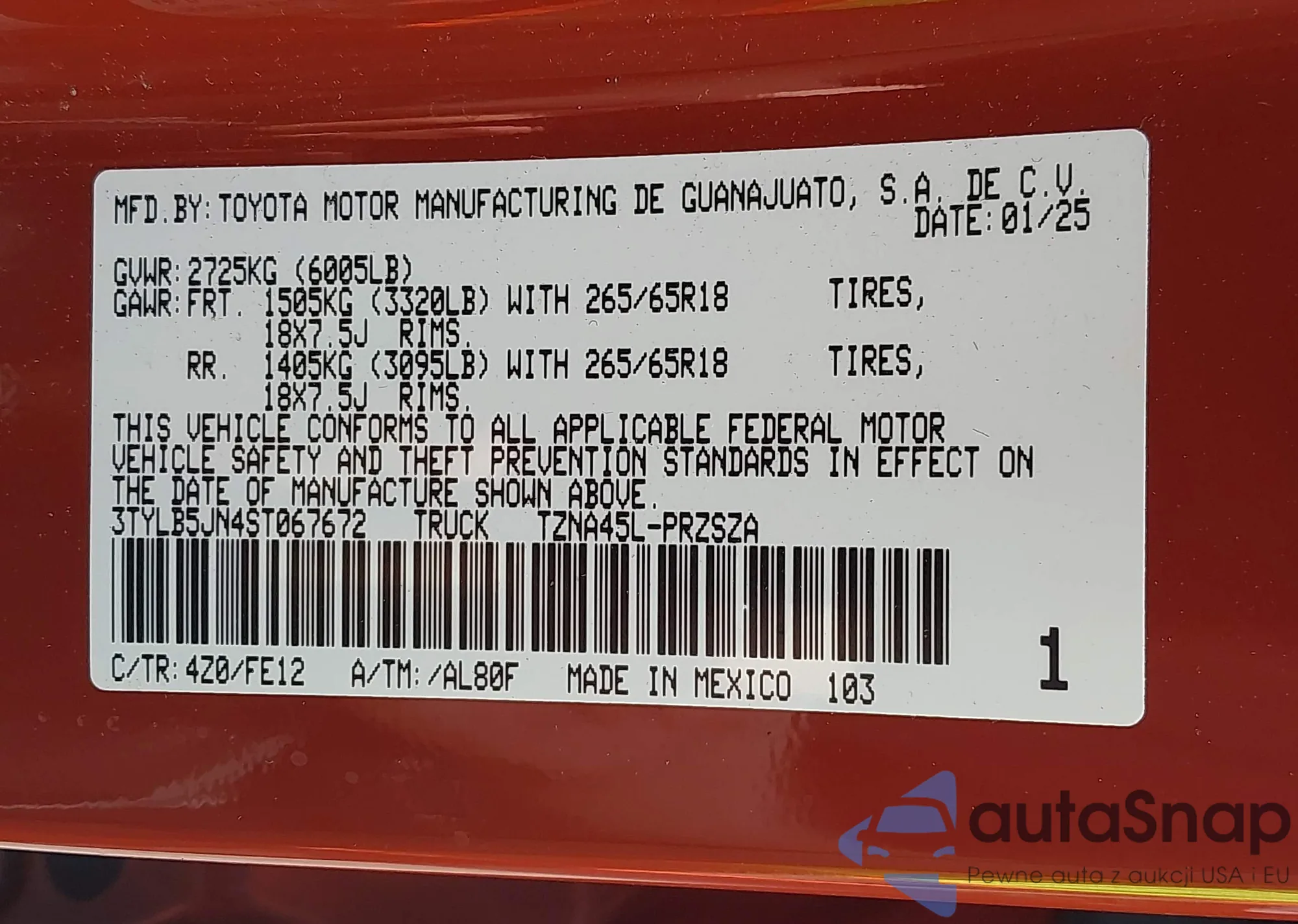 • VIN 3TYLB5JN4ST067672