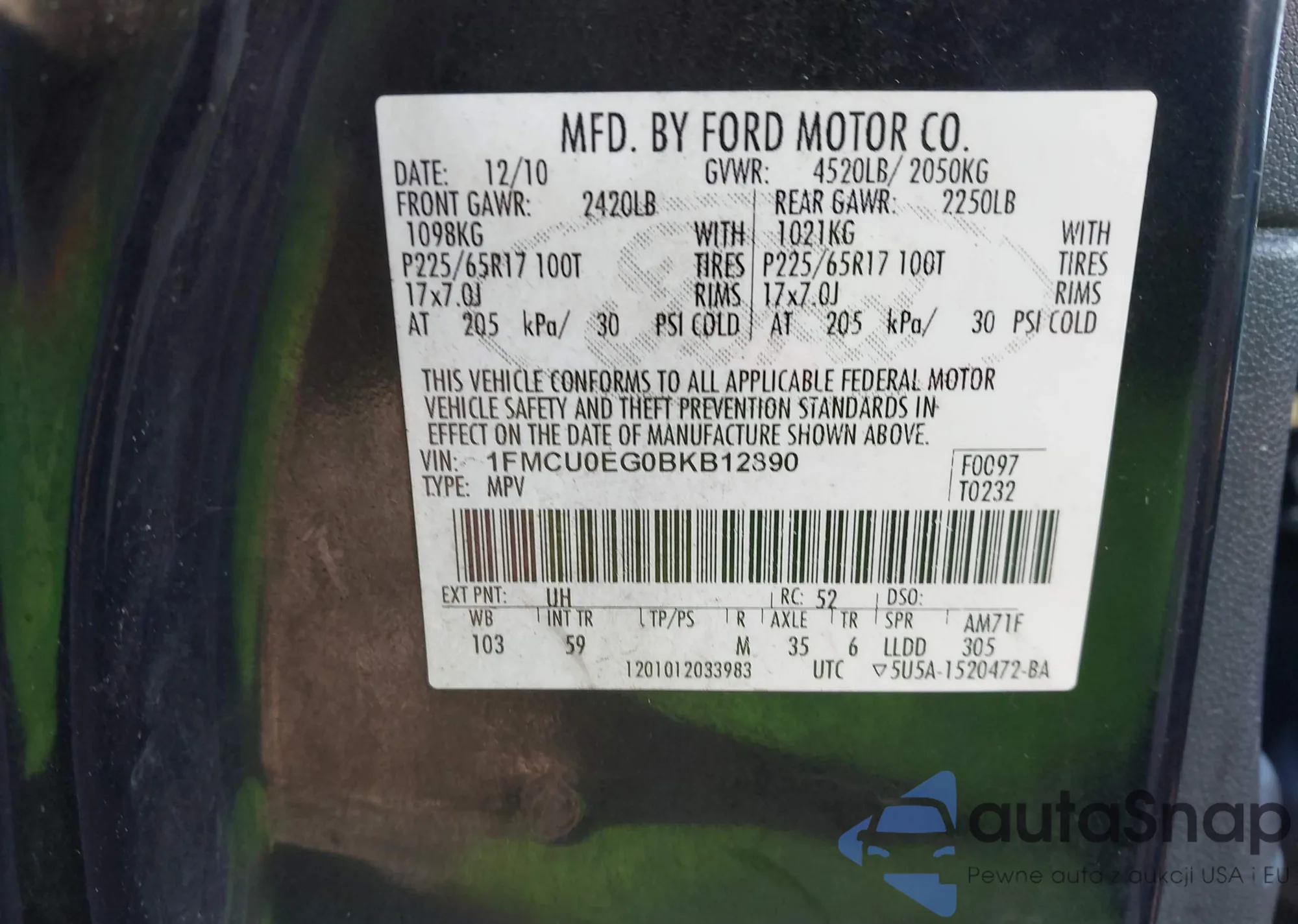 • VIN 1FMCU0EG0BKB12890