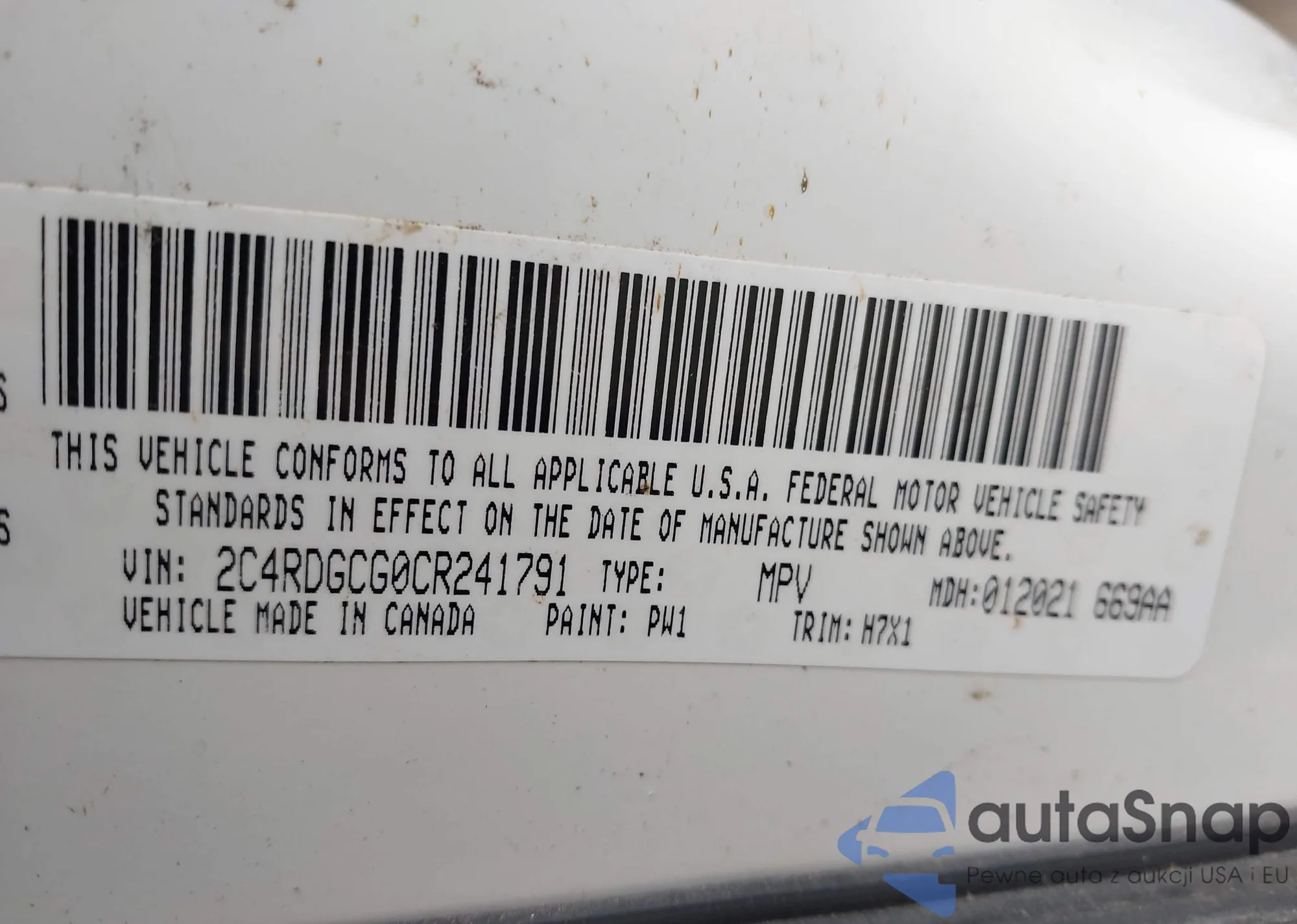 • VIN 2C4RDGCG0CR241791