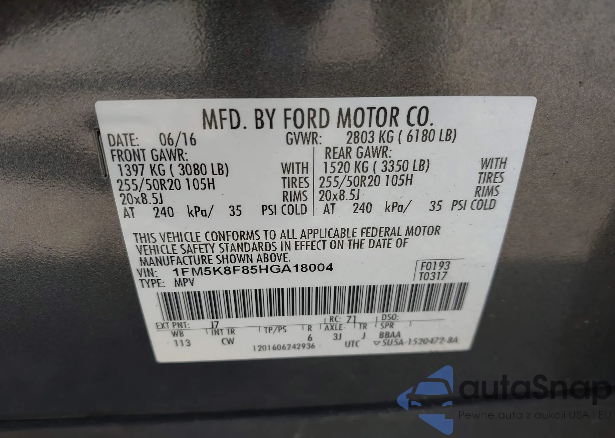 • VIN 1FM5K8F85HGA18004