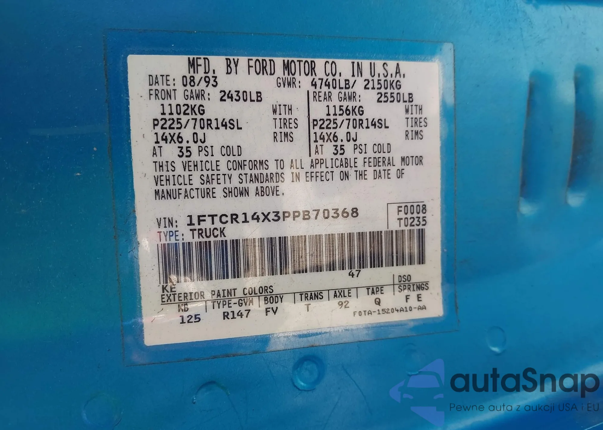 LOT: 43361648 VIN: 1FTCR14X3PPB70368