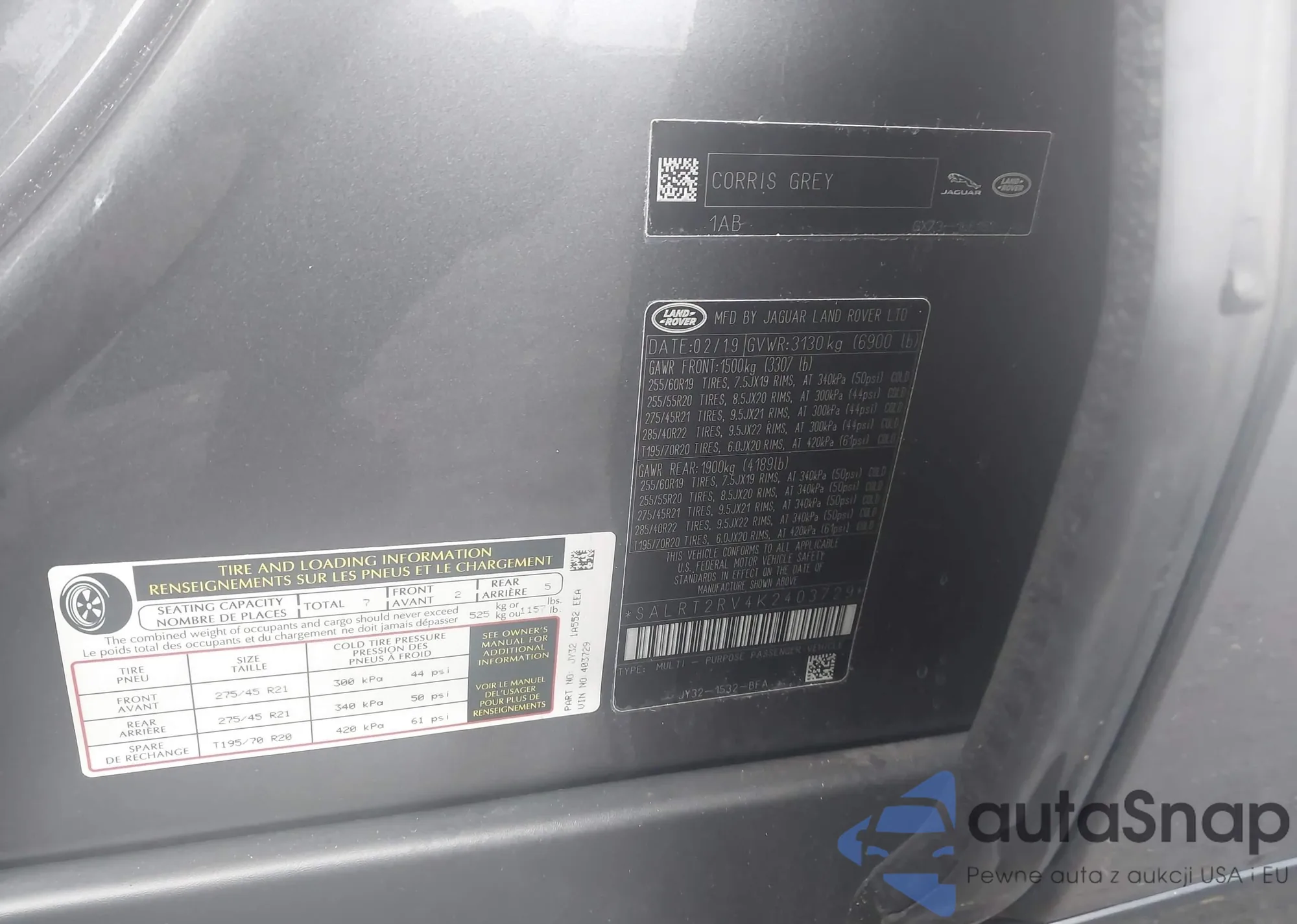 LOT: 43661290 VIN: 2T3WFREV3HW354314