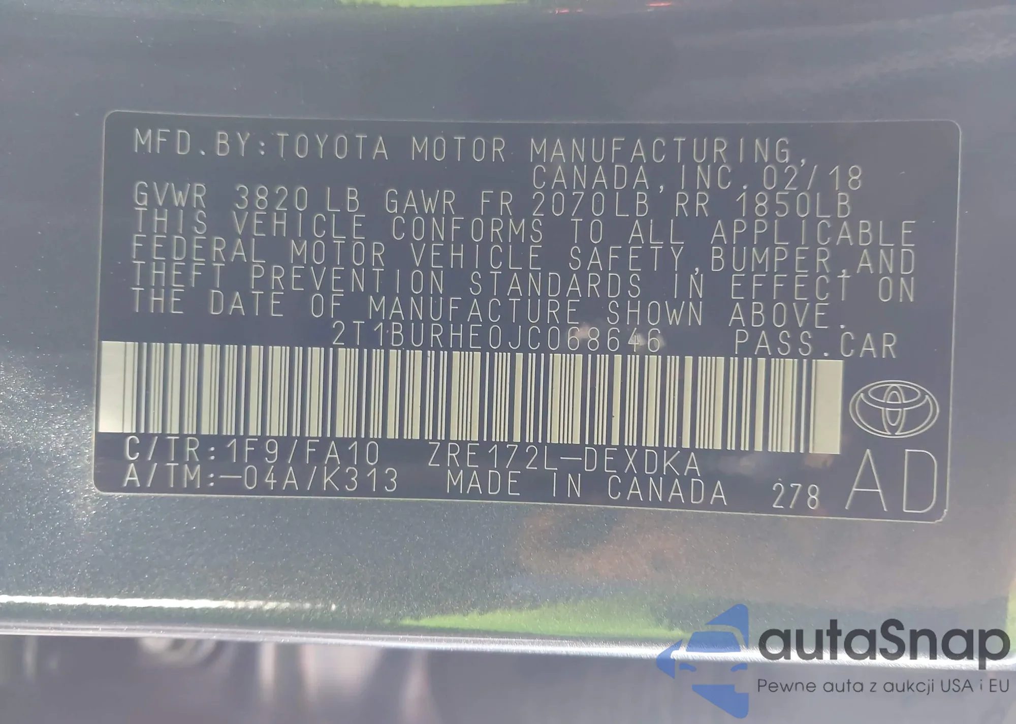 LOT: 44109371 VIN: 4T1BK36B06U143332