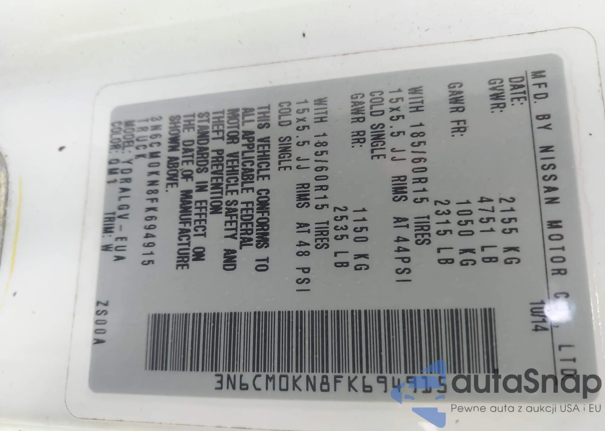 • VIN 3N6CM0KN8FK694915
