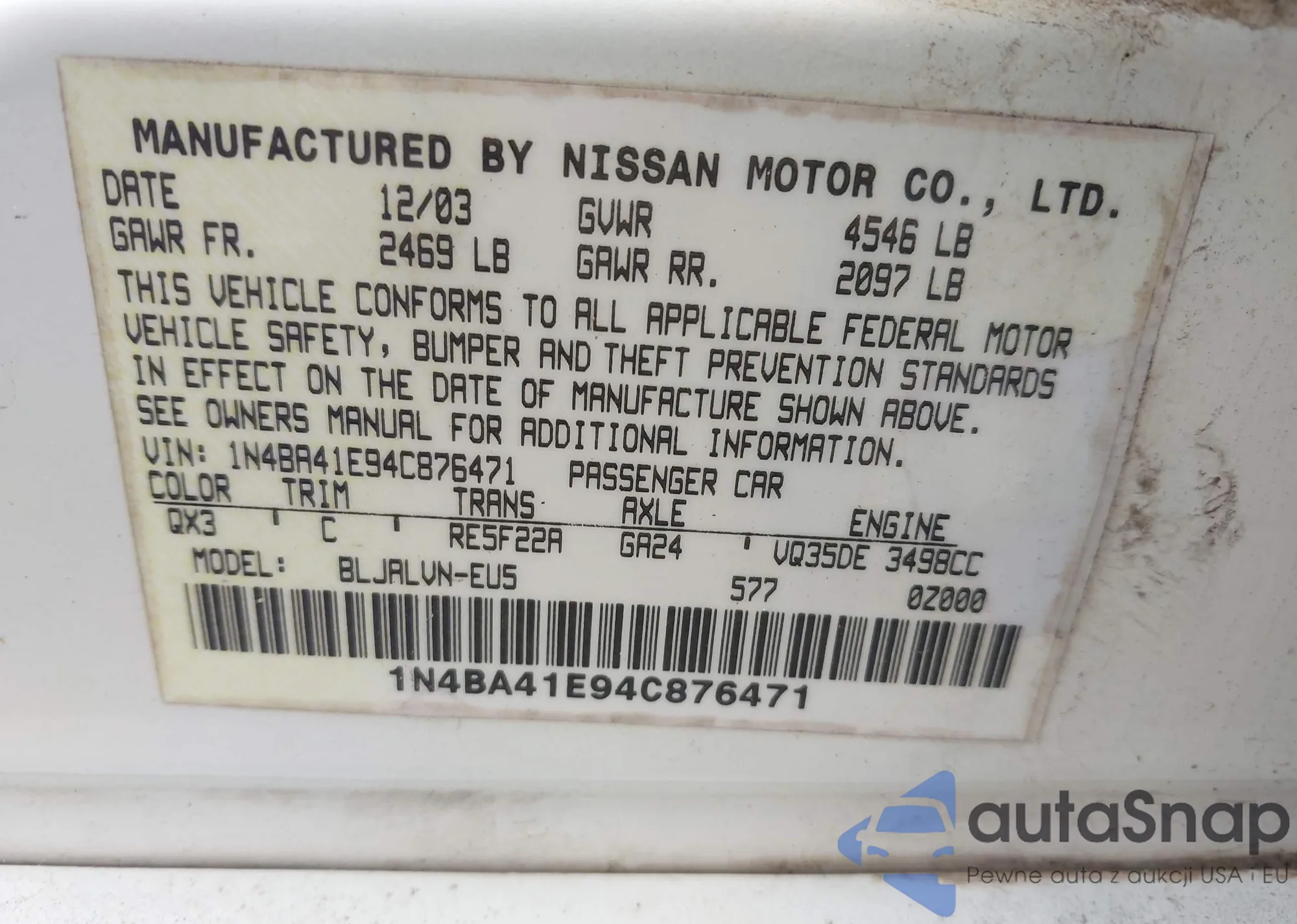 • VIN 1N4BA41E94C876471