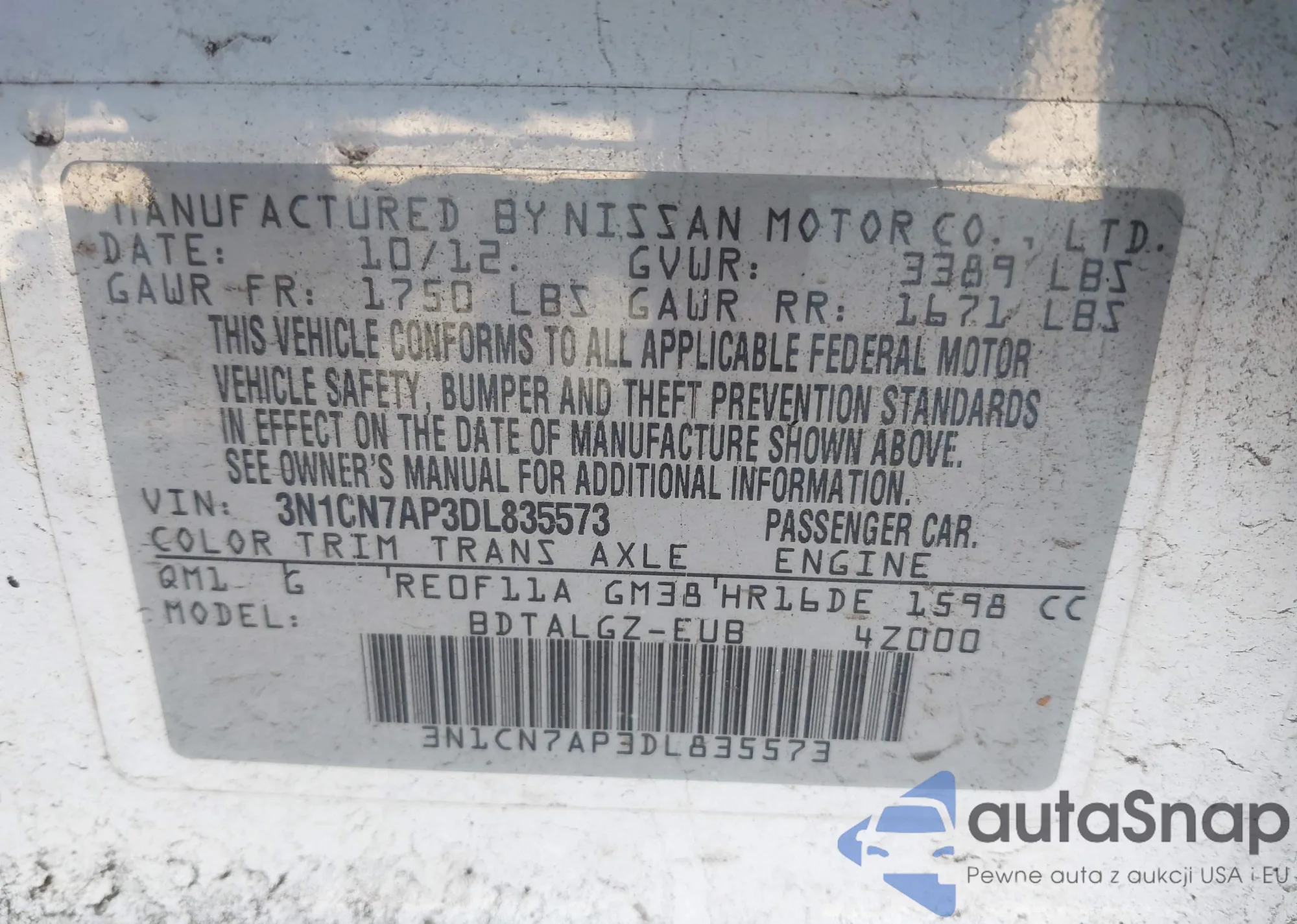 • VIN 3N1CN7AP3DL835573