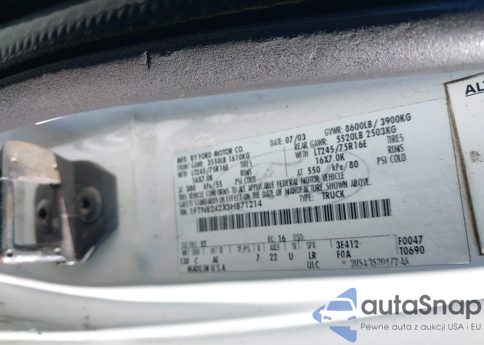 • VIN 1FTNE242X3HB71214