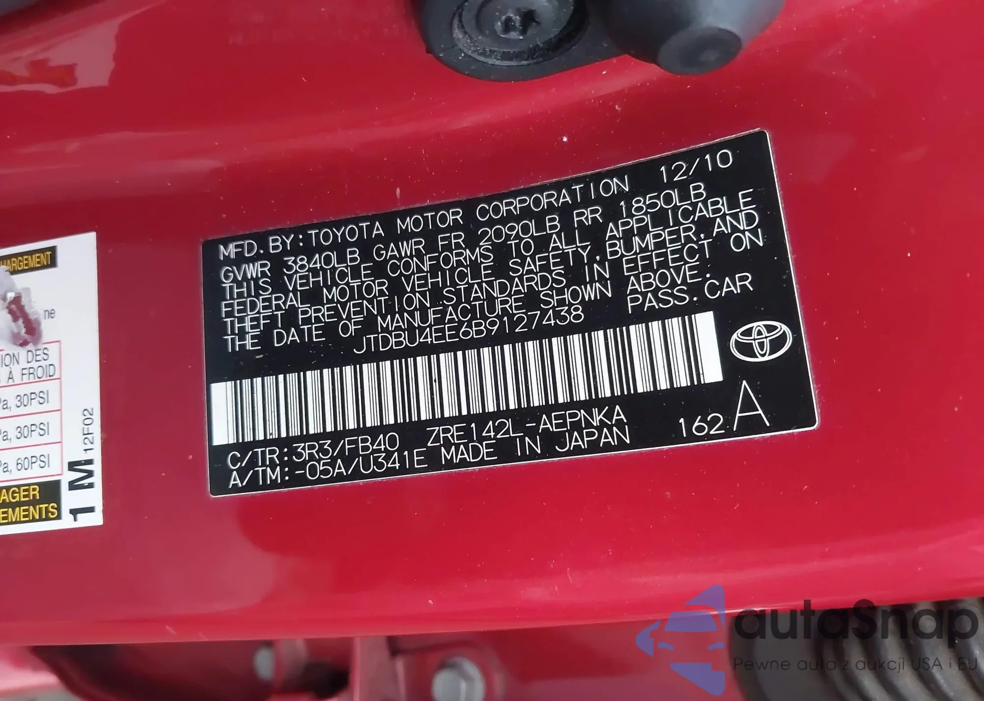 LOT: 44017087 VIN: 2T1BURHE2JC049502
