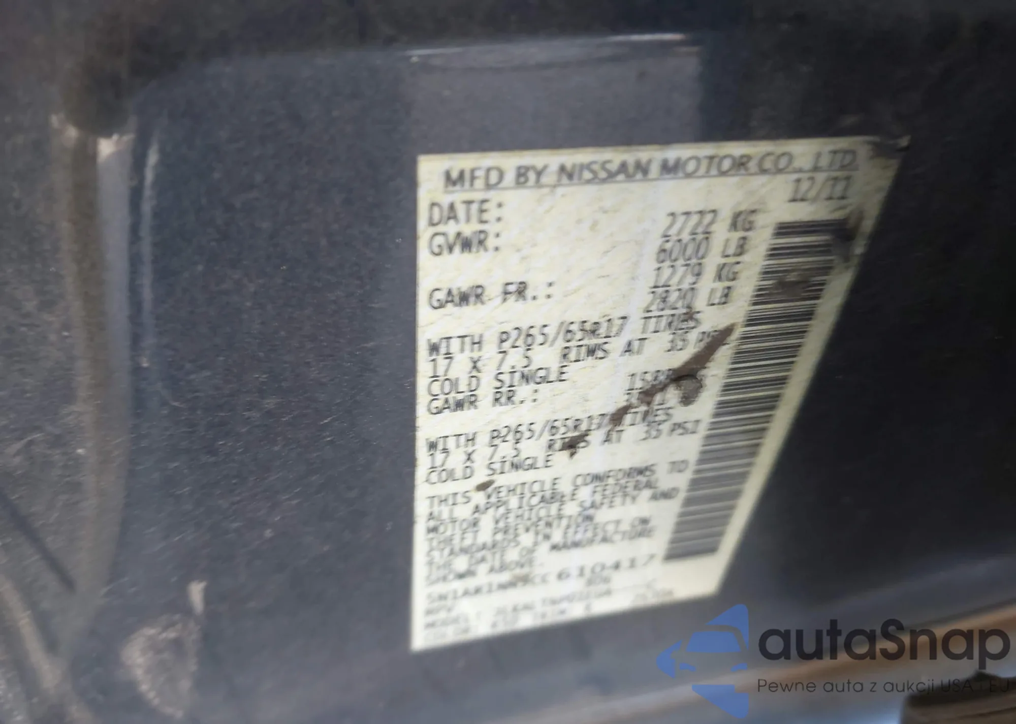 • VIN 5N1AR1NN9CC610417