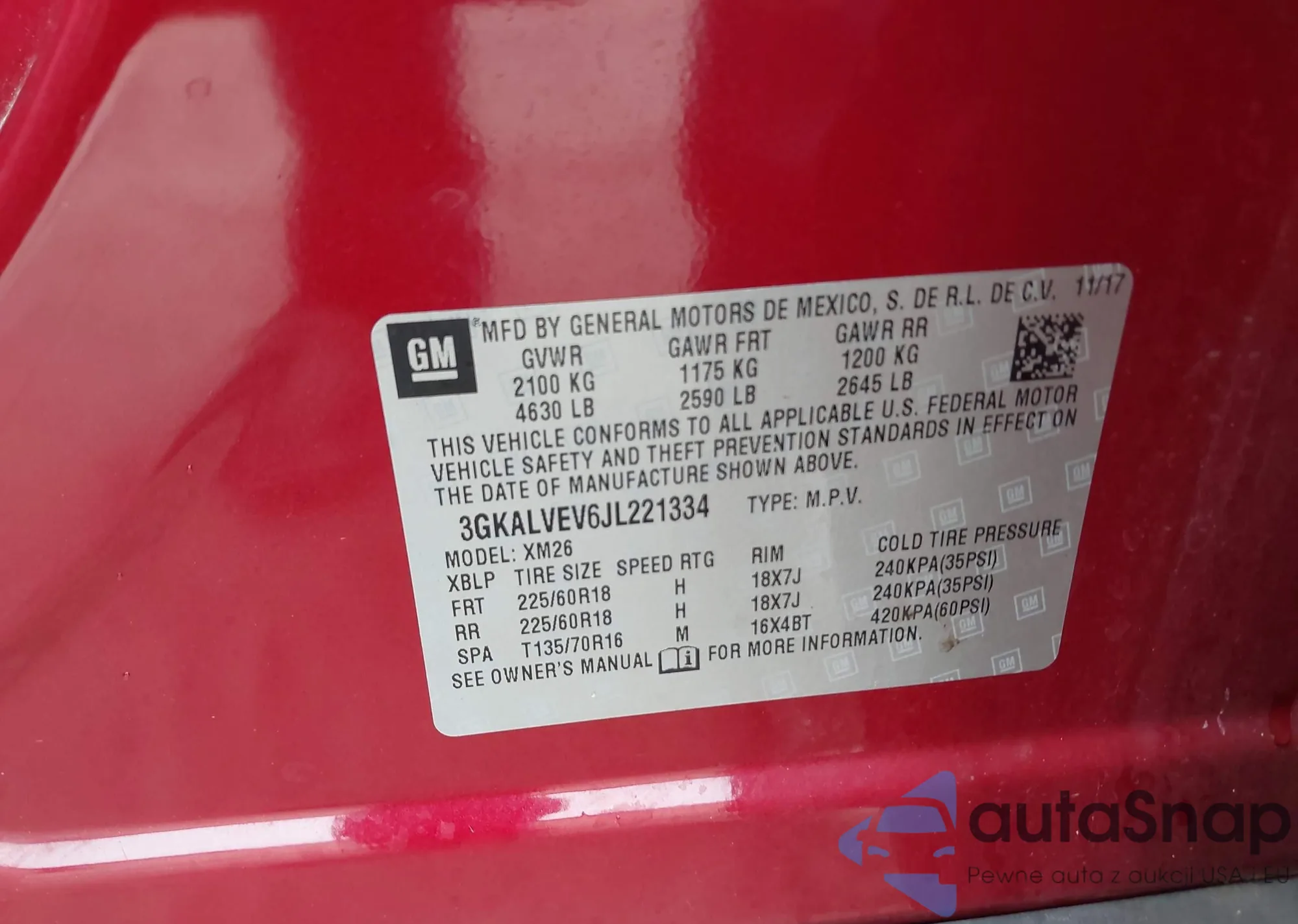 LOT: 43559723 VIN: 3GNAXKEG0PS124880
