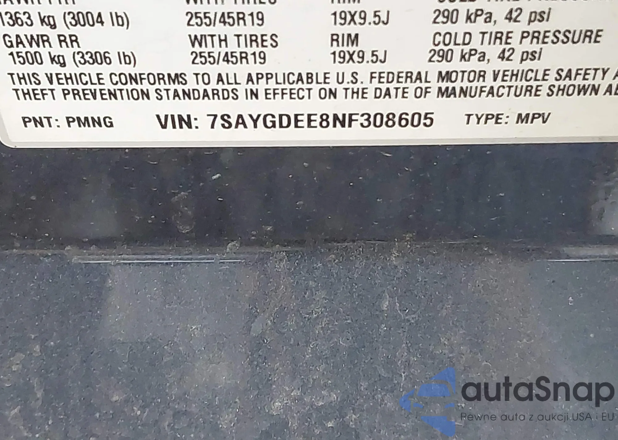 • VIN 7SAYGDEE8NF308605