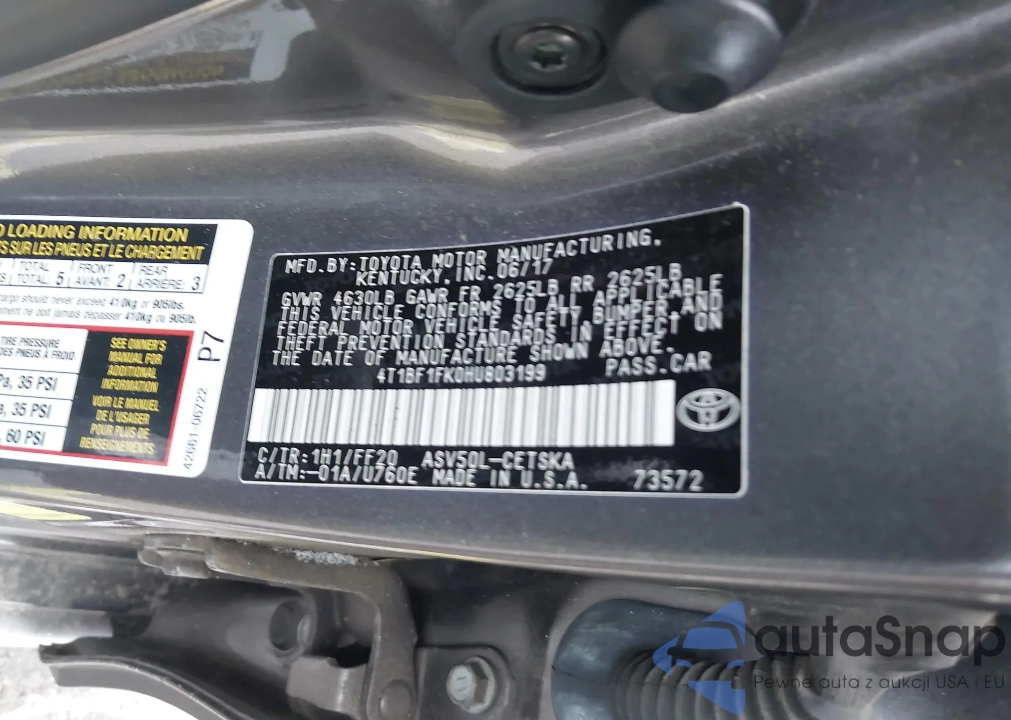 • VIN 4T1BF1FK0HU803199