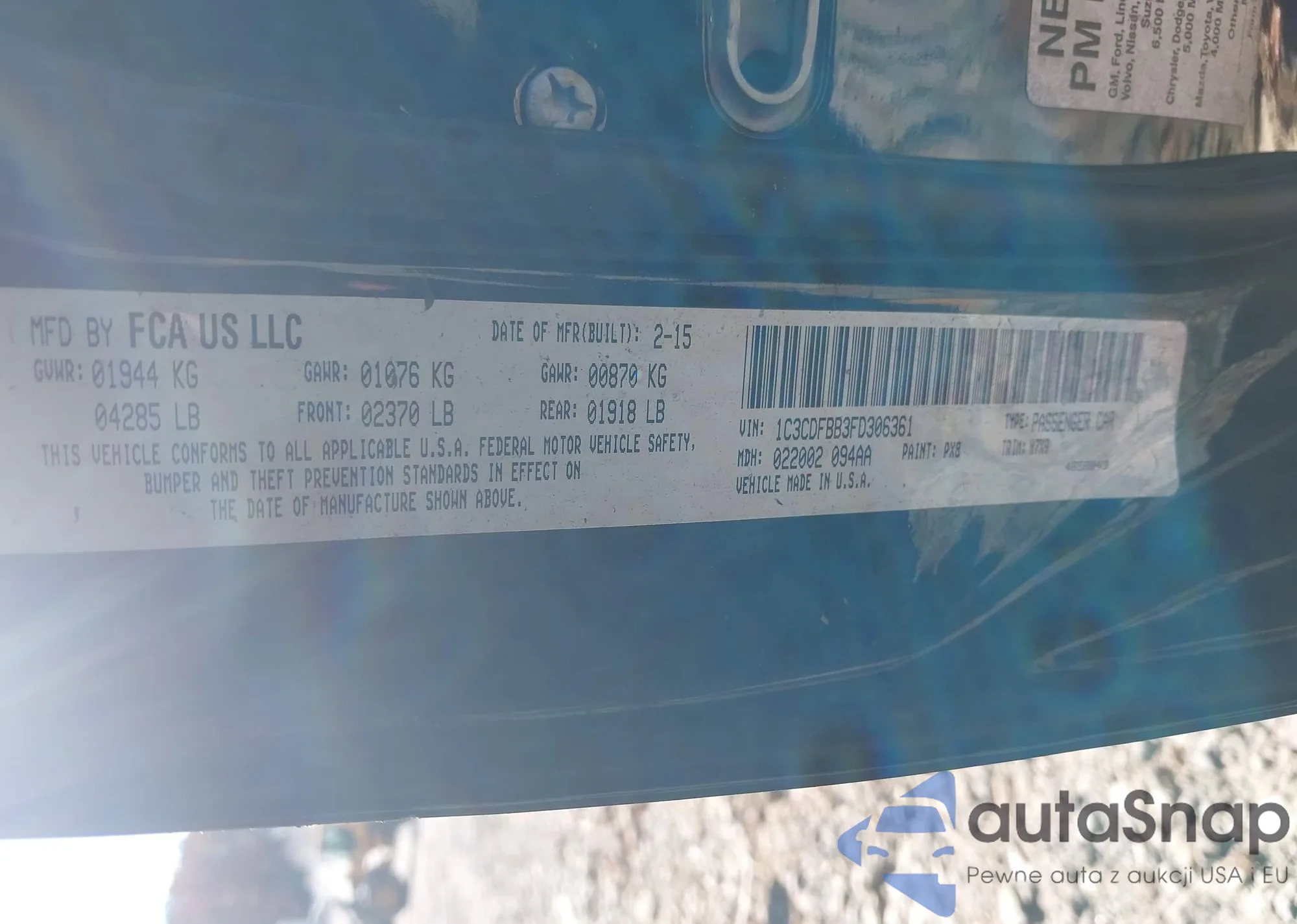 • VIN 1C3CDFBB3FD306361