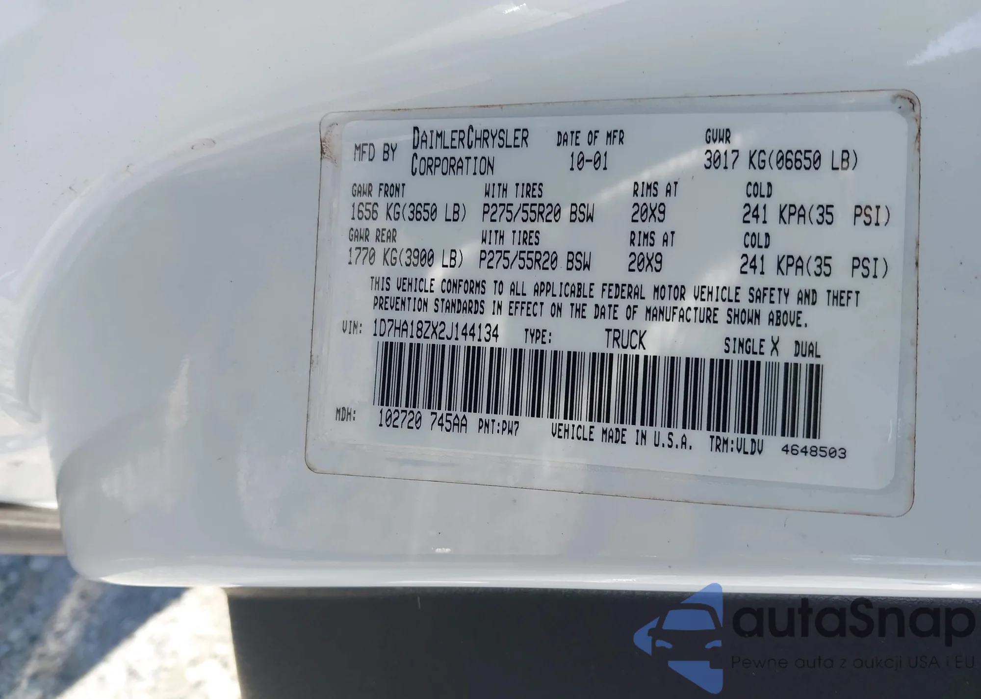 • VIN 1D7HA18ZX2J144134