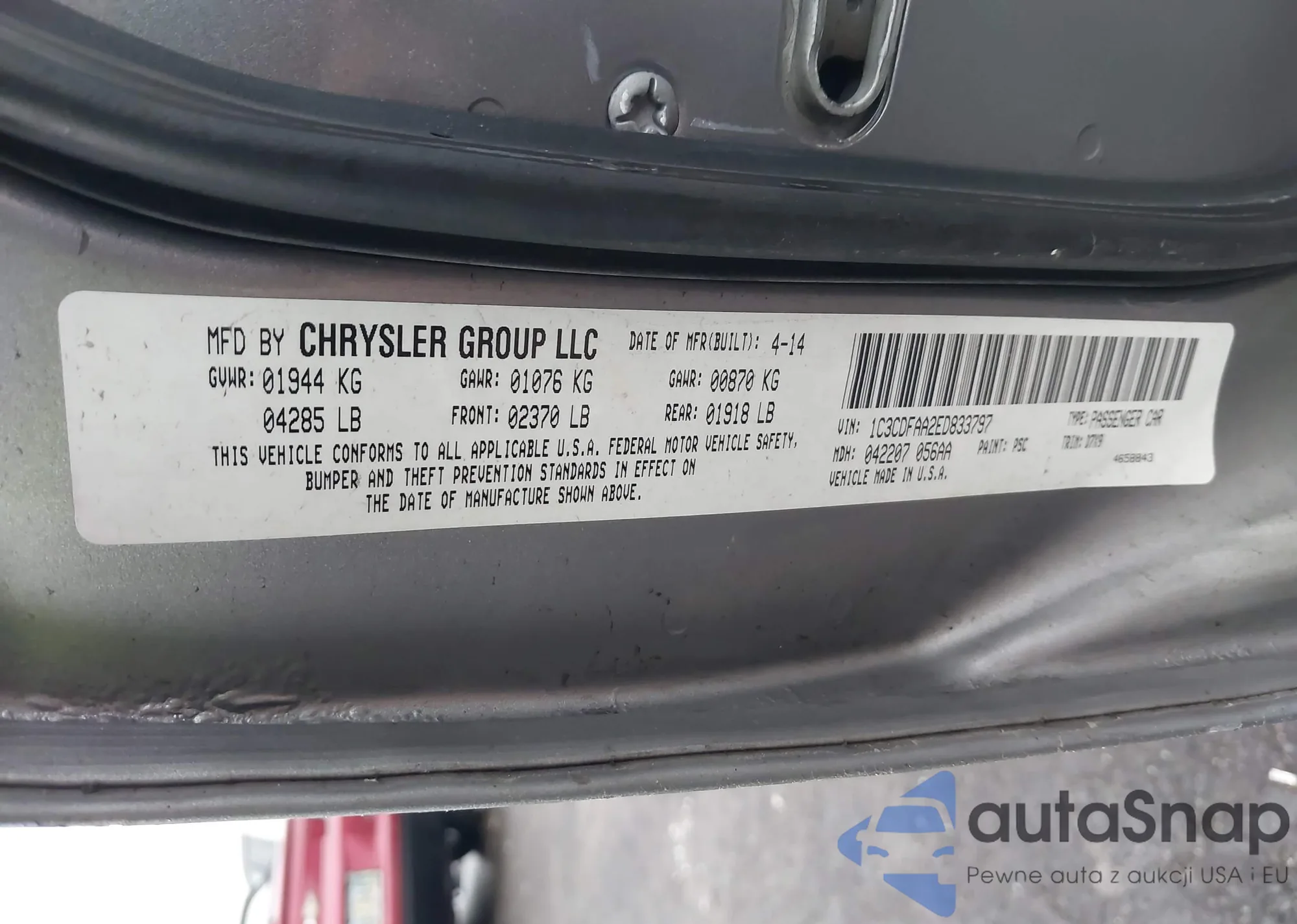 • VIN 1C4RJFCG8CC174174