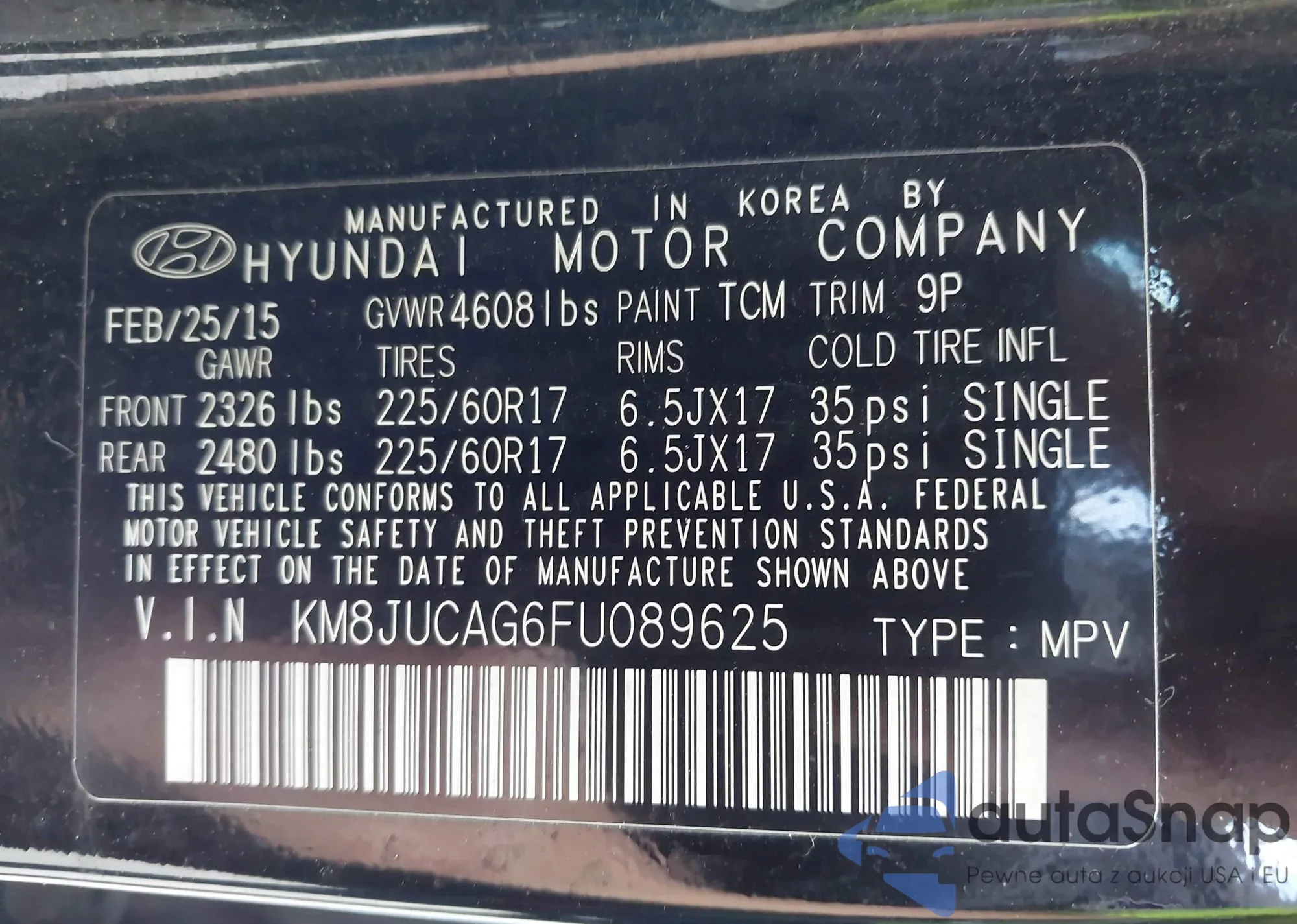 LOT: 43382754 VIN: KM8JUCAG6FU089625