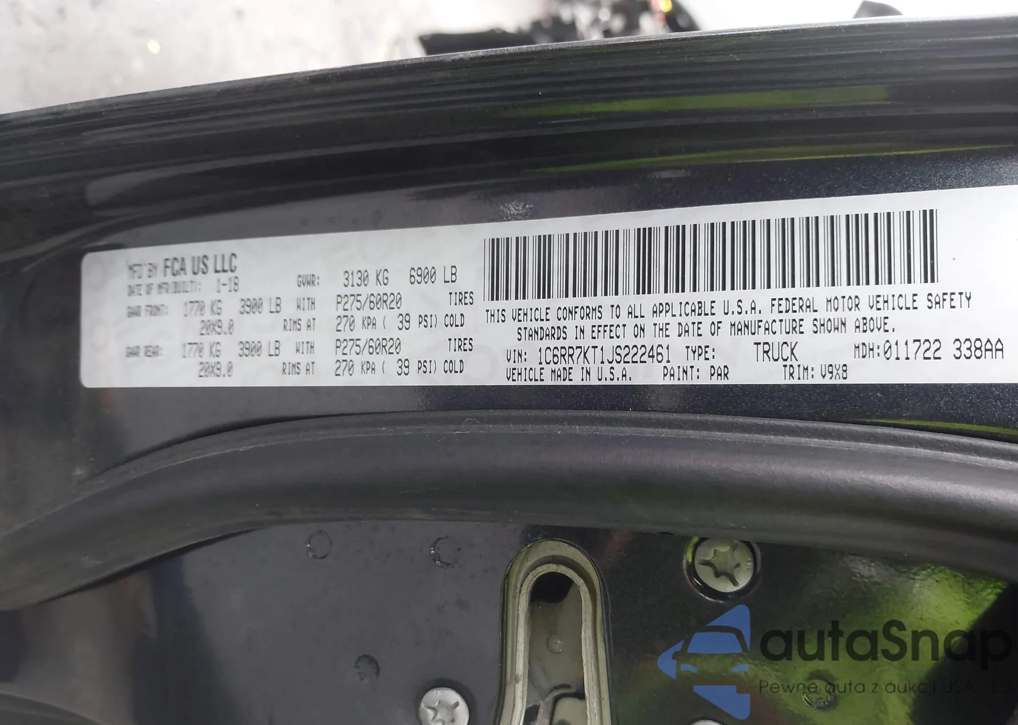 • VIN 1C6RR7KT1JS222461