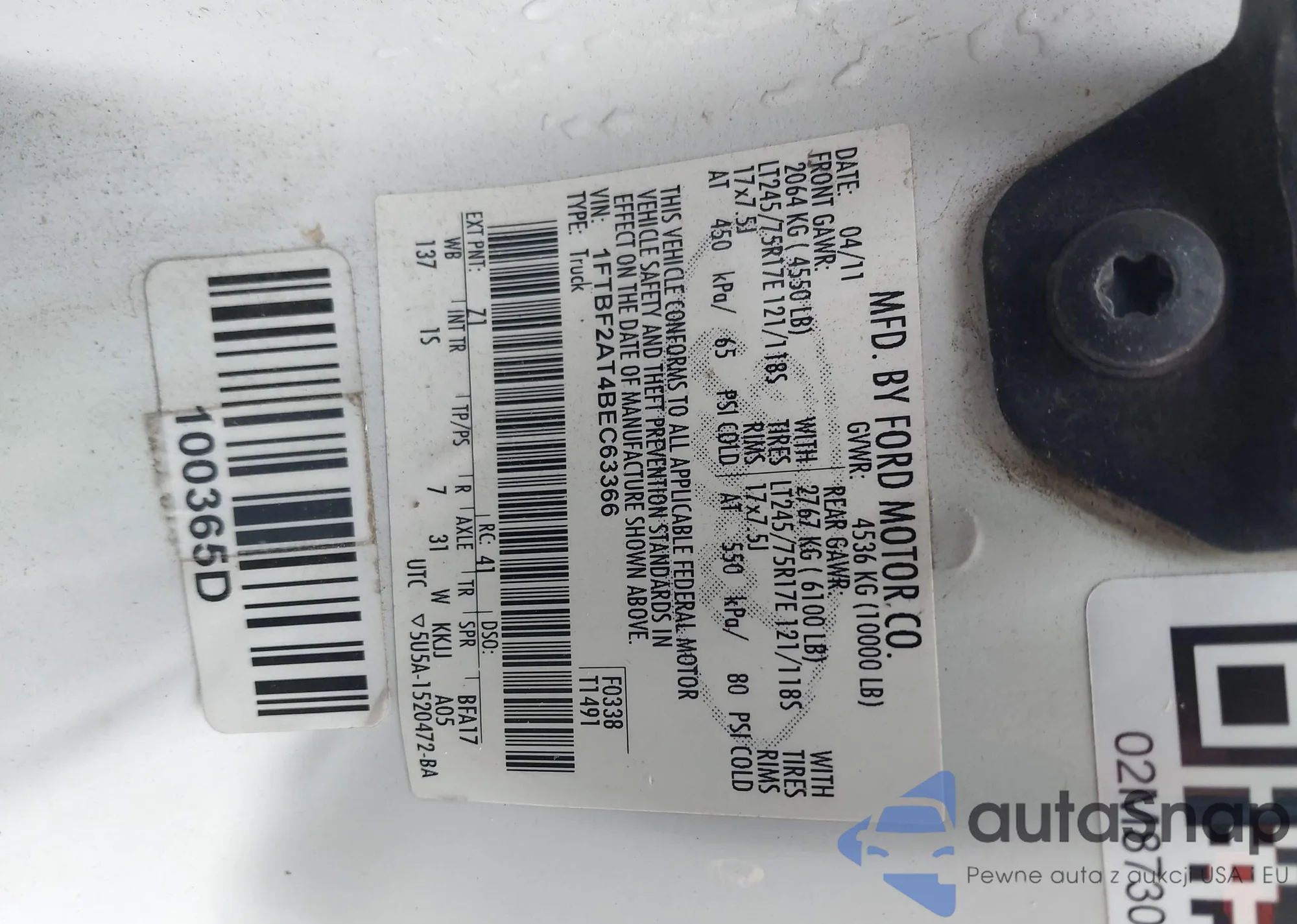 • VIN 1FTBF2AT4BEC63366