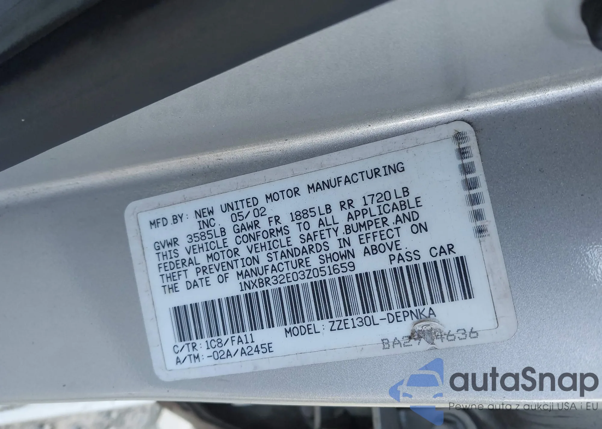 LOT: 44180890 VIN: 1NXBR32E03Z051659