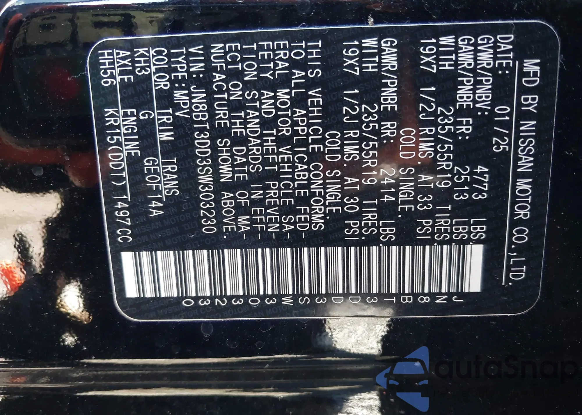 • VIN JN8BT3DD3SW303230