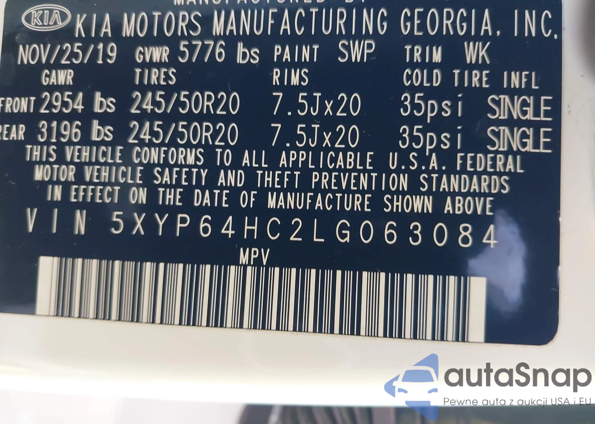 • VIN 5XYP64HC2LG063084