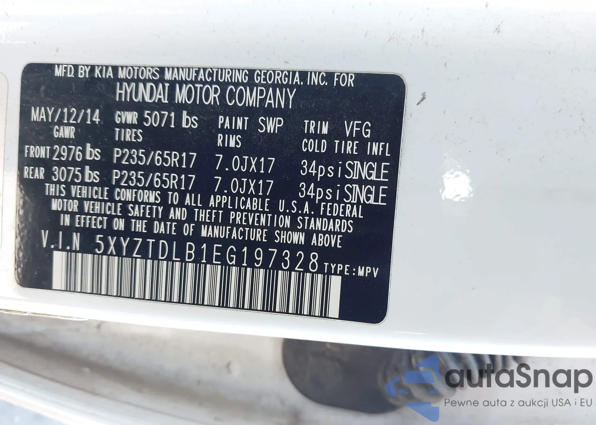 LOT: 43935632 VIN: 5XYZTDLB1EG197328