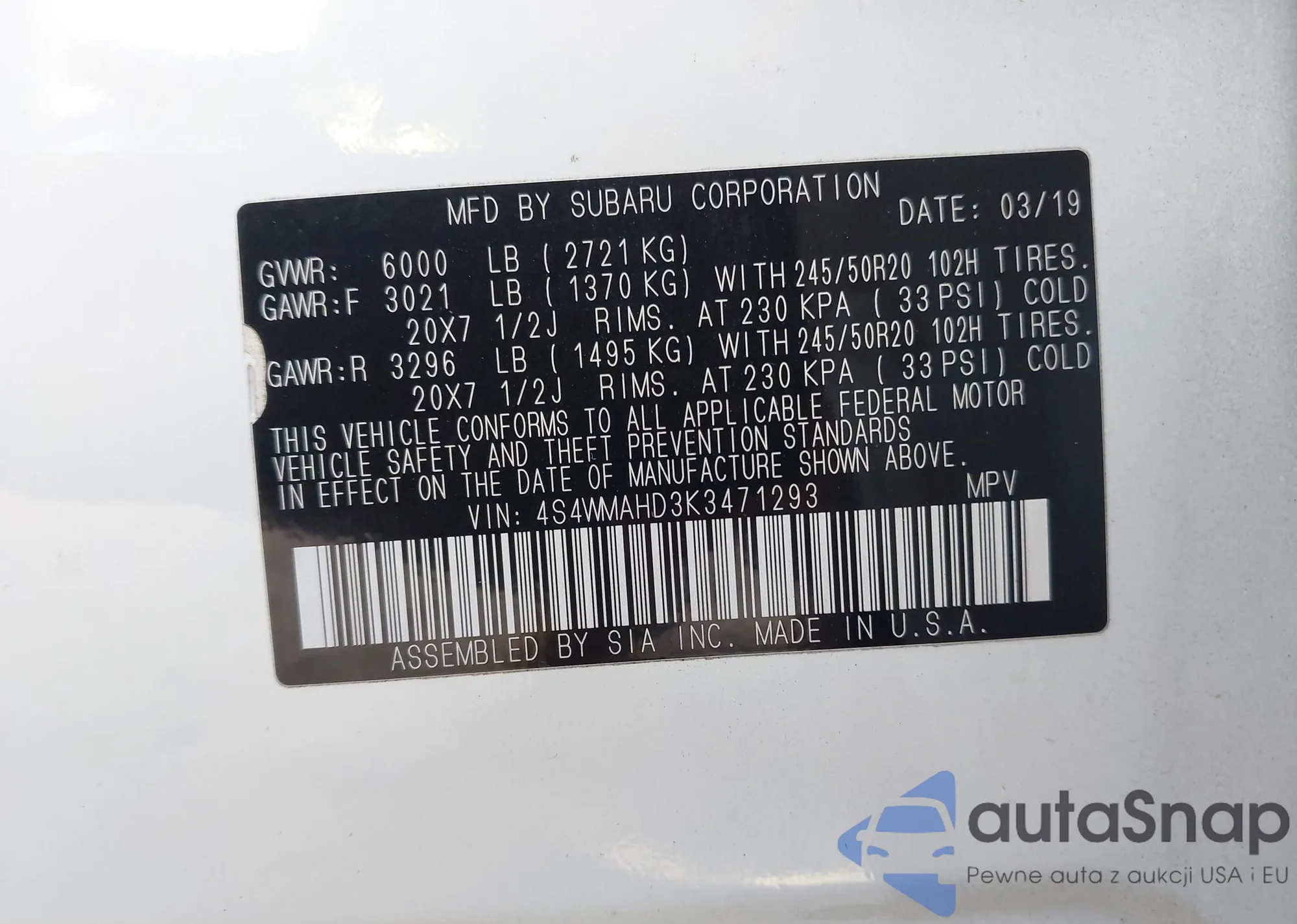 • VIN 4S4WMAHD3K3471293