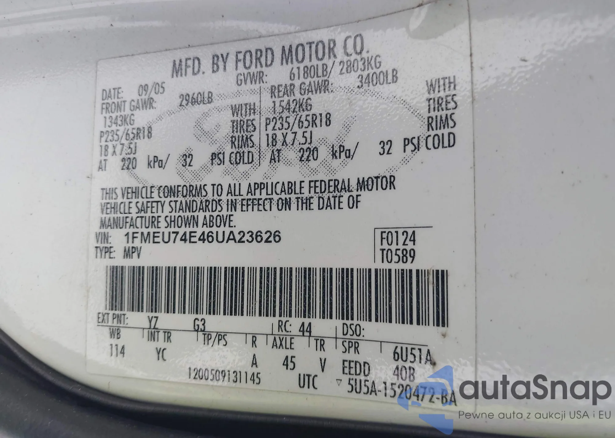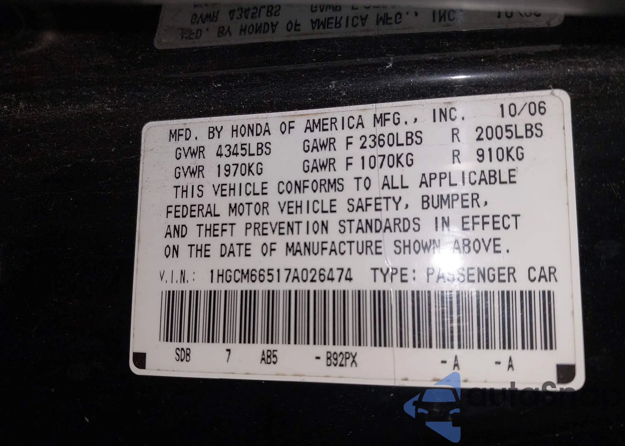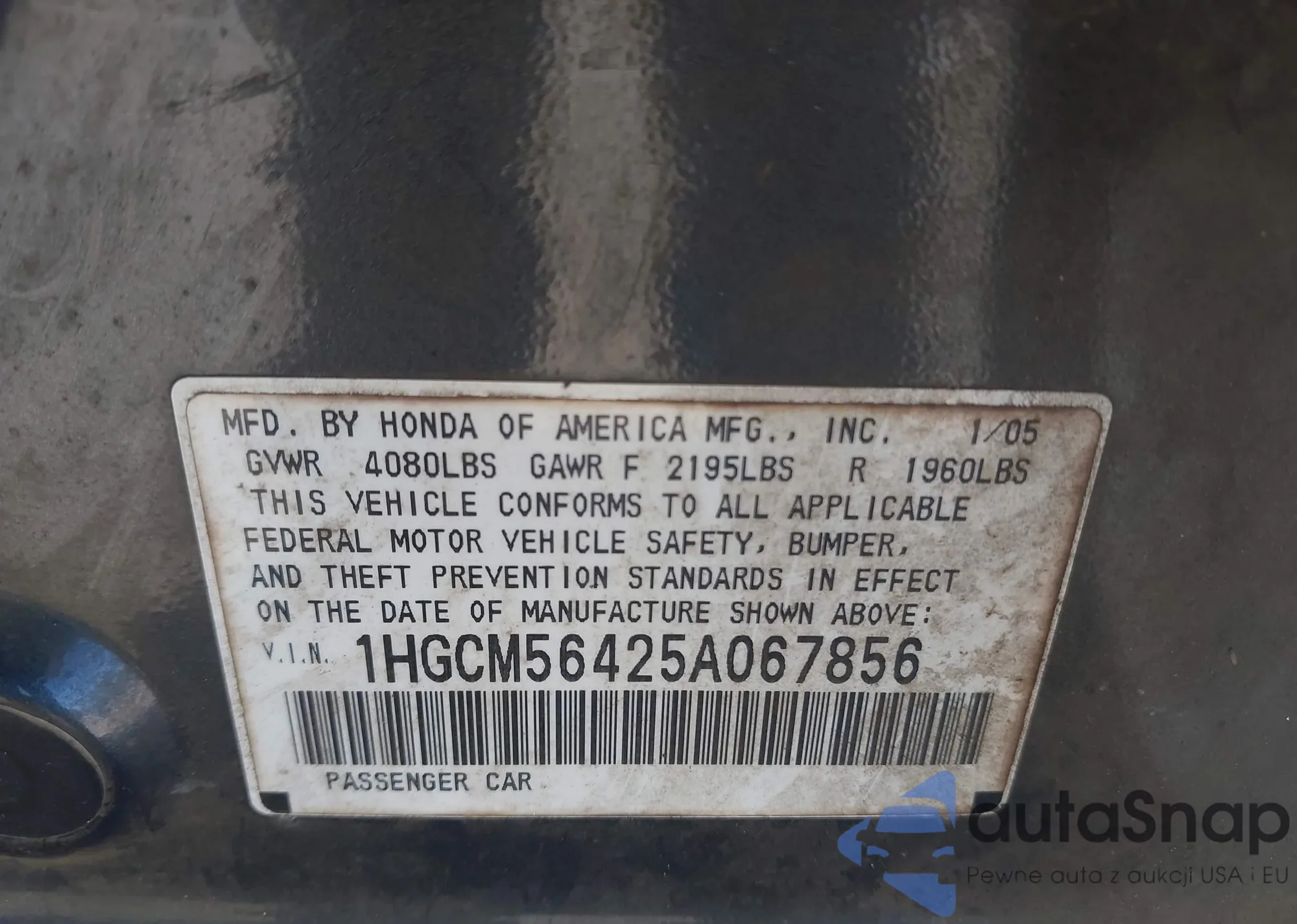LOT: 44003265 VIN: 1HGCM56425A067856