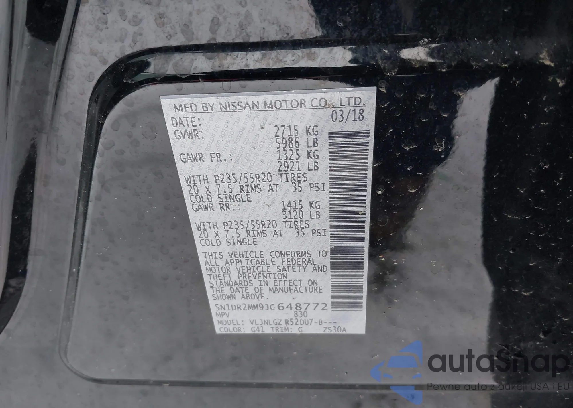 LOT: 43906005 VIN: 5N1DR2MM9JC648772