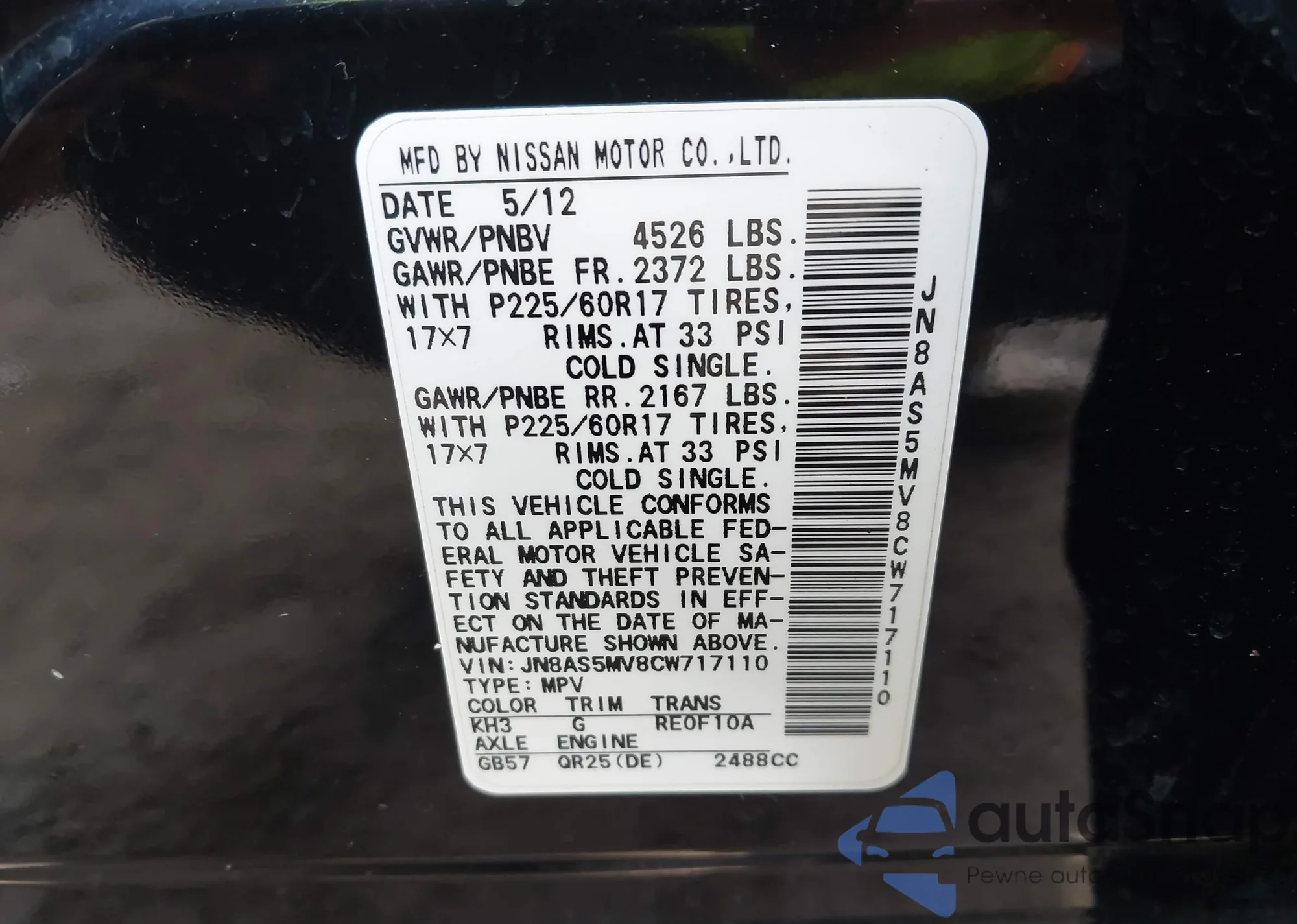 • VIN 5N1DR2MM9JC648772