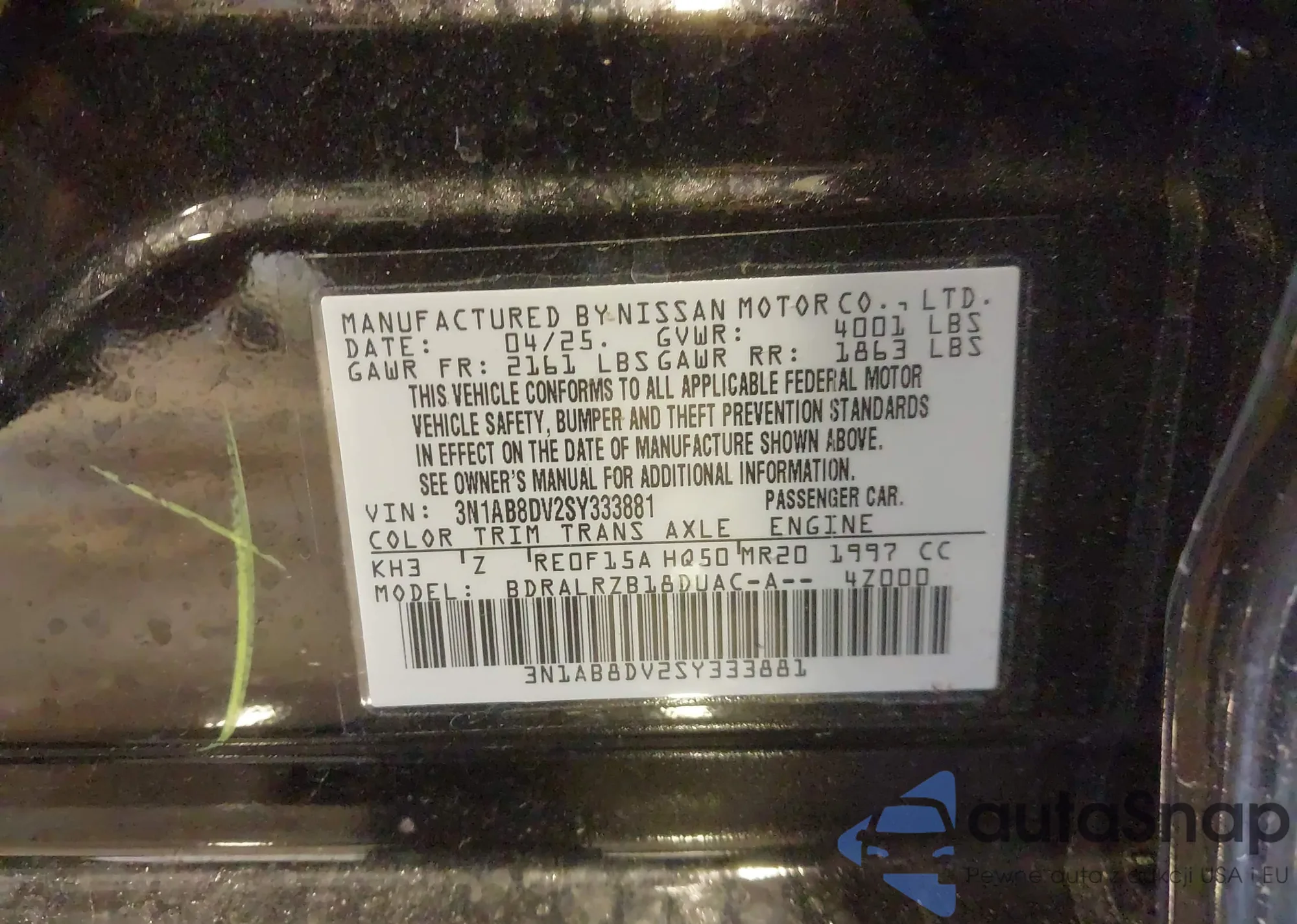 • VIN 3N1AB8DV2SY333881