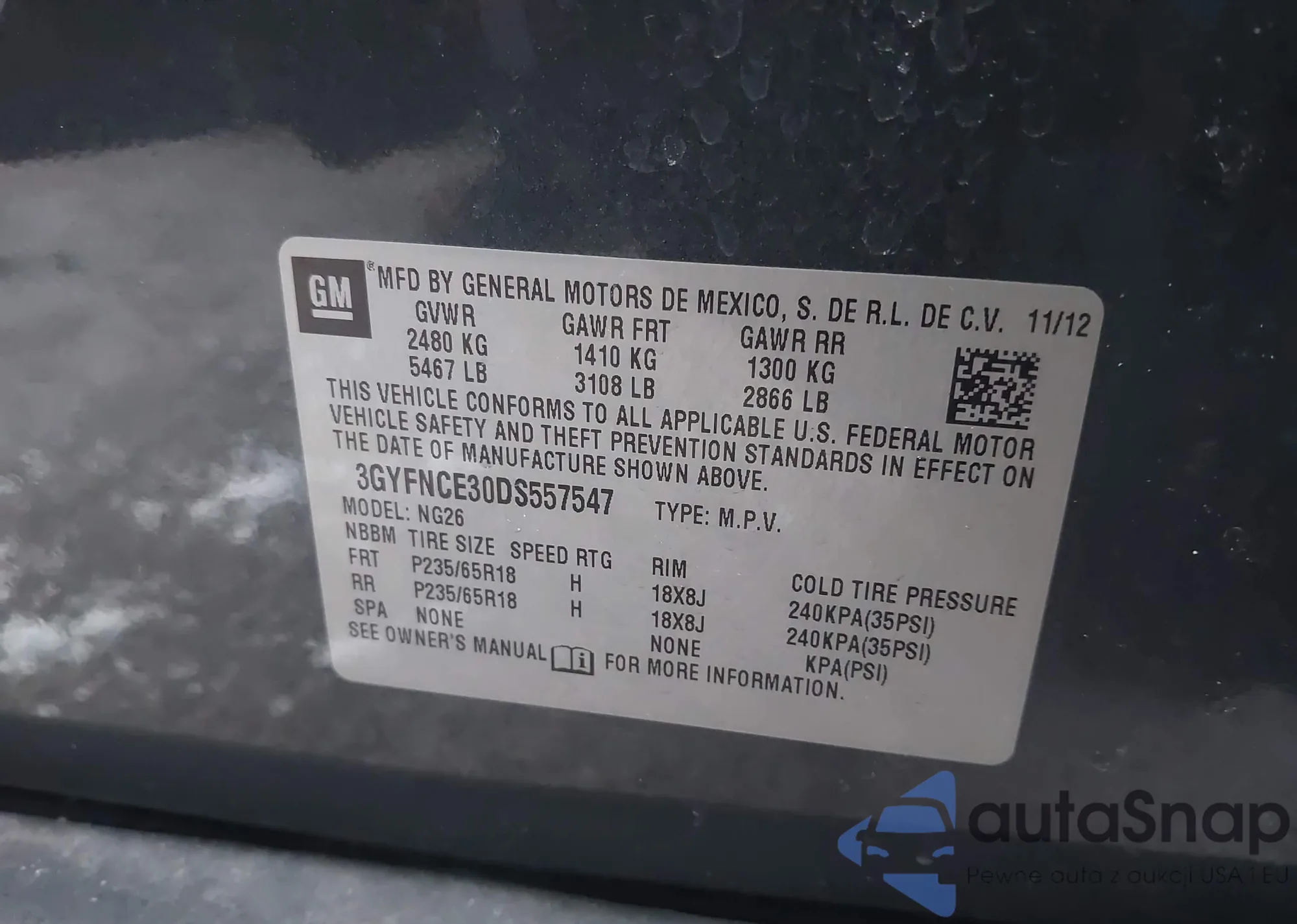 • VIN 3GYFNCE30DS557547