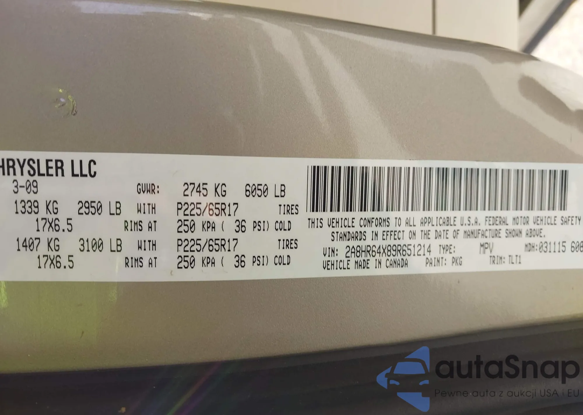 • VIN 3A8FY48B98T141432