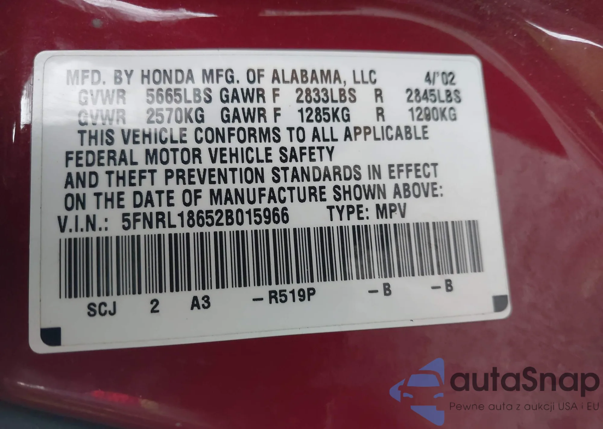 • Lot number 44048053