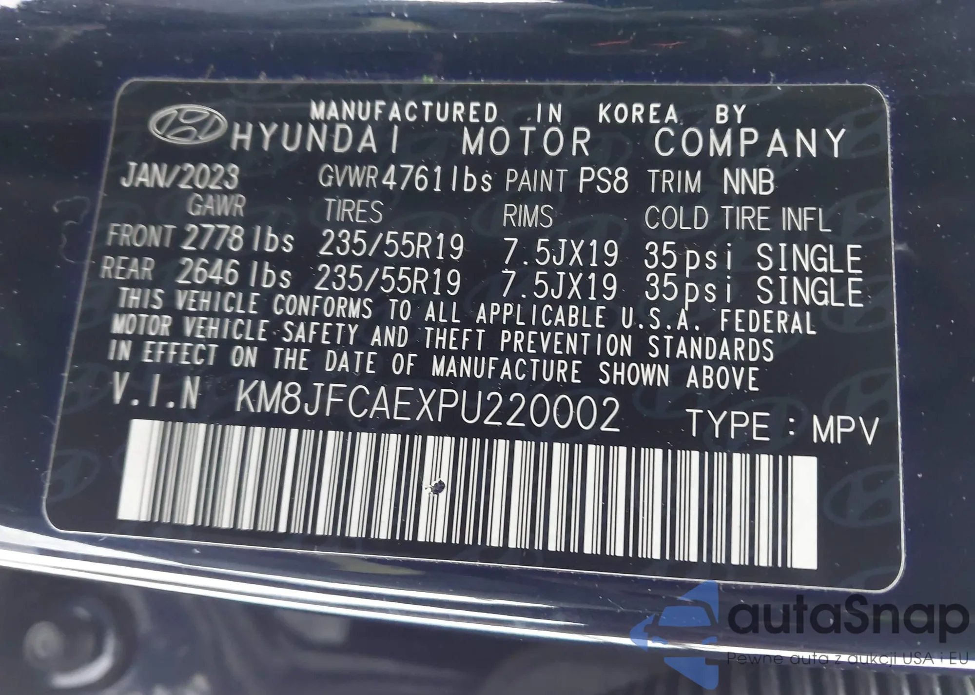 • VIN KM8JFCAEXPU220002