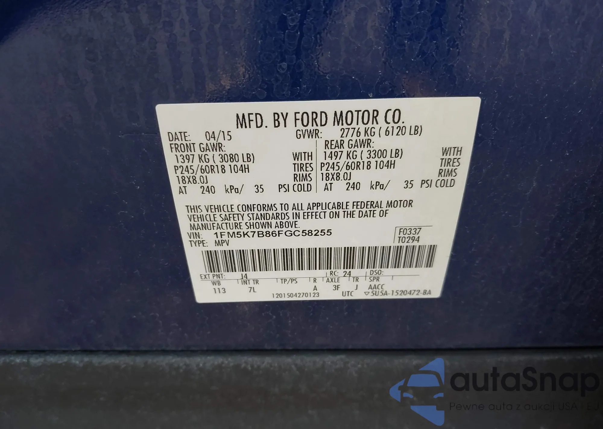 • VIN 1FMCU9JX0EUB92372