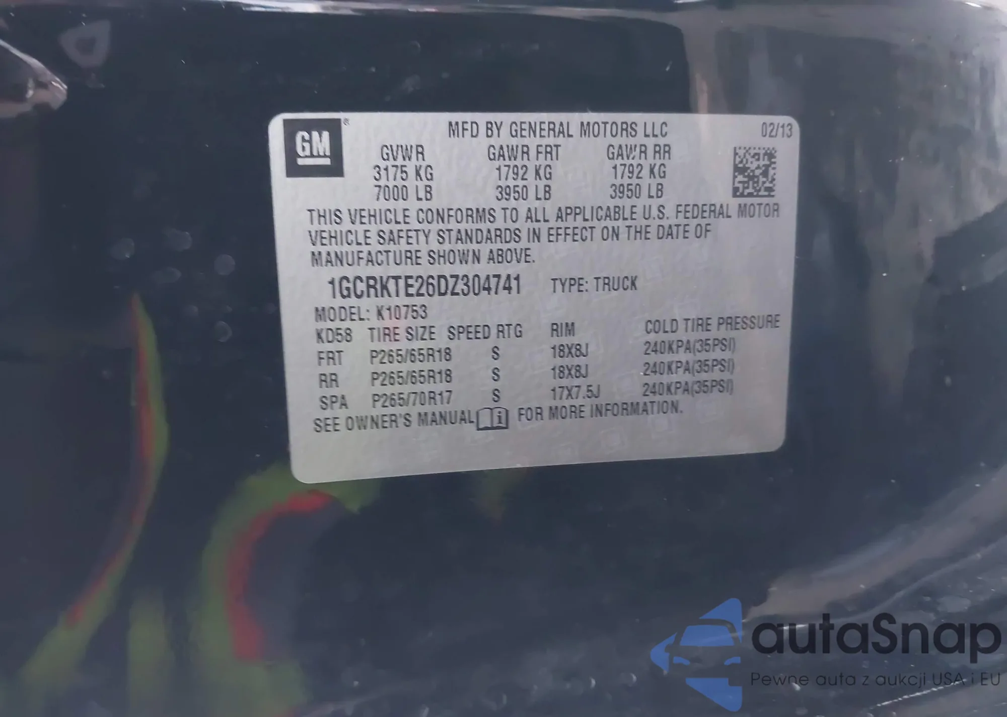 • VIN 1GCRKTE26DZ304741