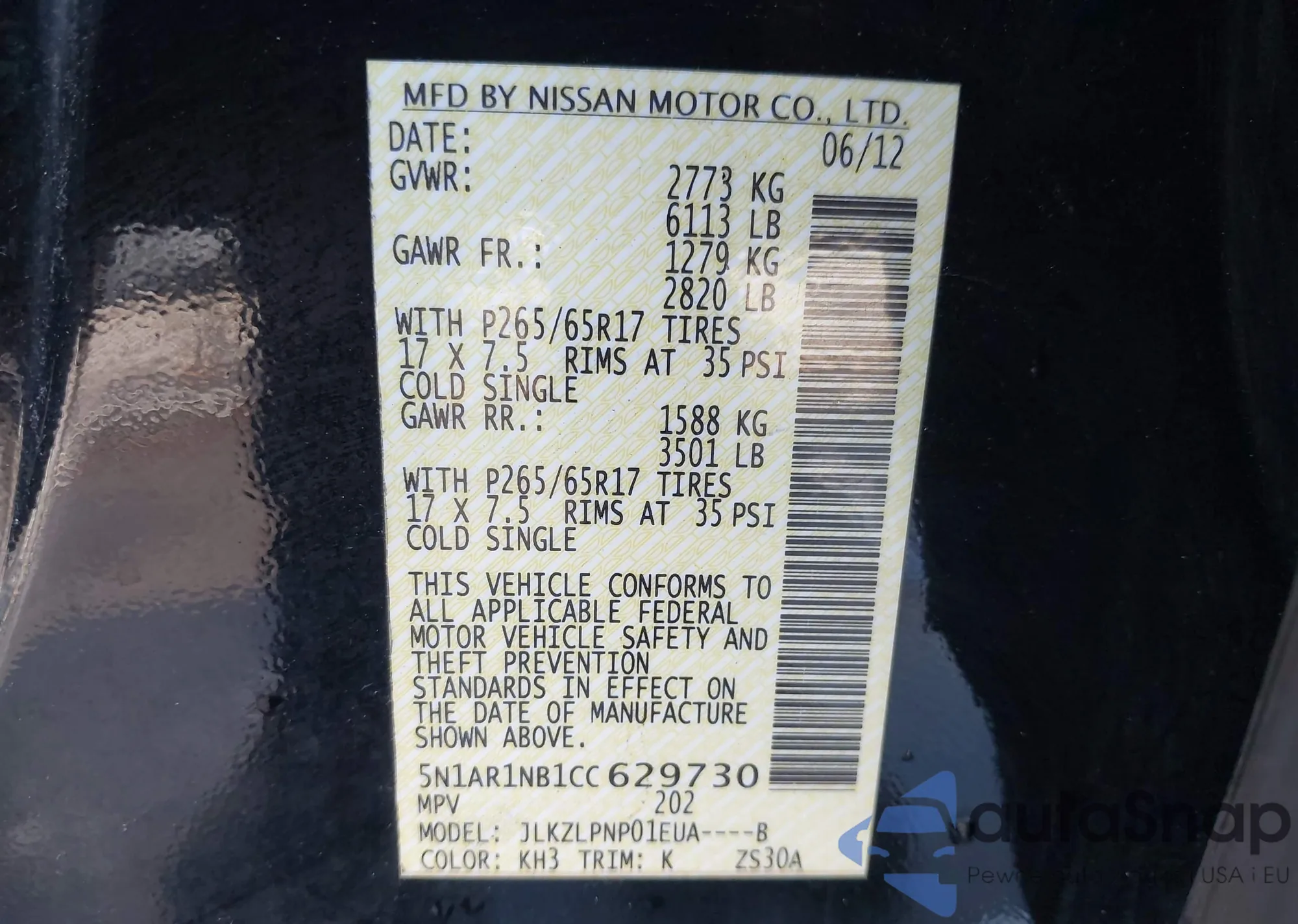 • VIN 5N1AR1NB1CC629730